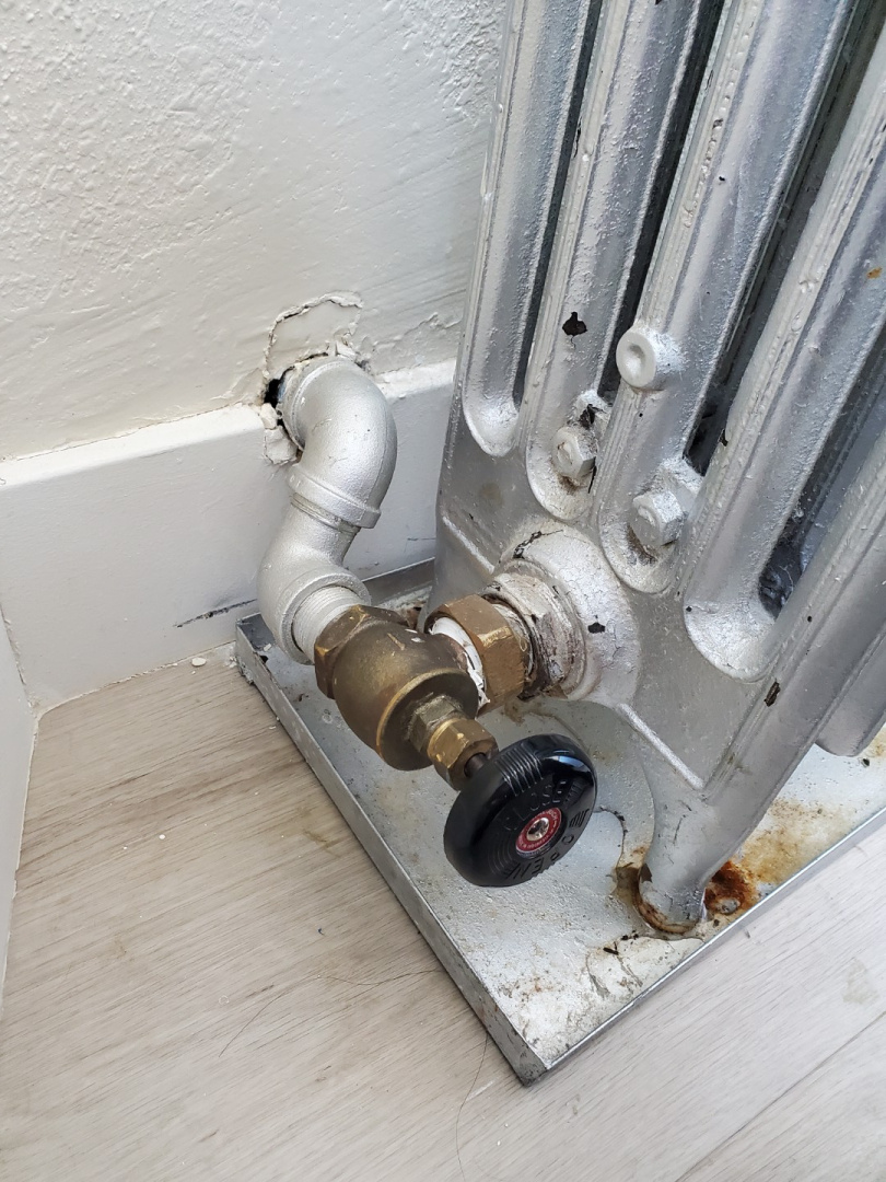 Hi everyone. Recently discovered this site after moving to a new apartment with steam heating. Our apartment was renovated before we moved in and they redid piping, flooring, and electrical. Ever since we moved in we have been having issues with our single pipe steam radiator water hammering and barely being warm. Maintenance has come by multiple times and replaced the air vent, valve, and flushed the radiator with no changes. After some research I think that this setup in the pictures will never work correctly due to condensate being unable to drain. Thanks for any possible help!