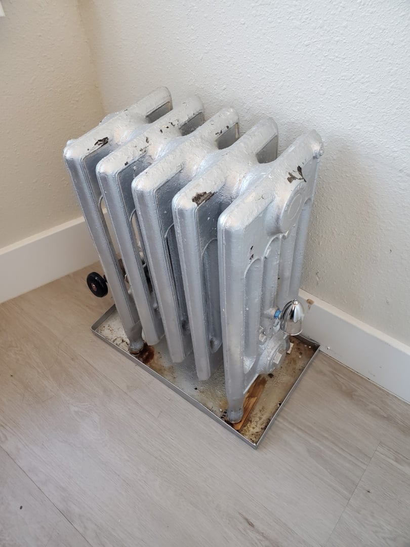 get some recycled wood (to match the vintage rad) to raise the radiator so it can drain properly.