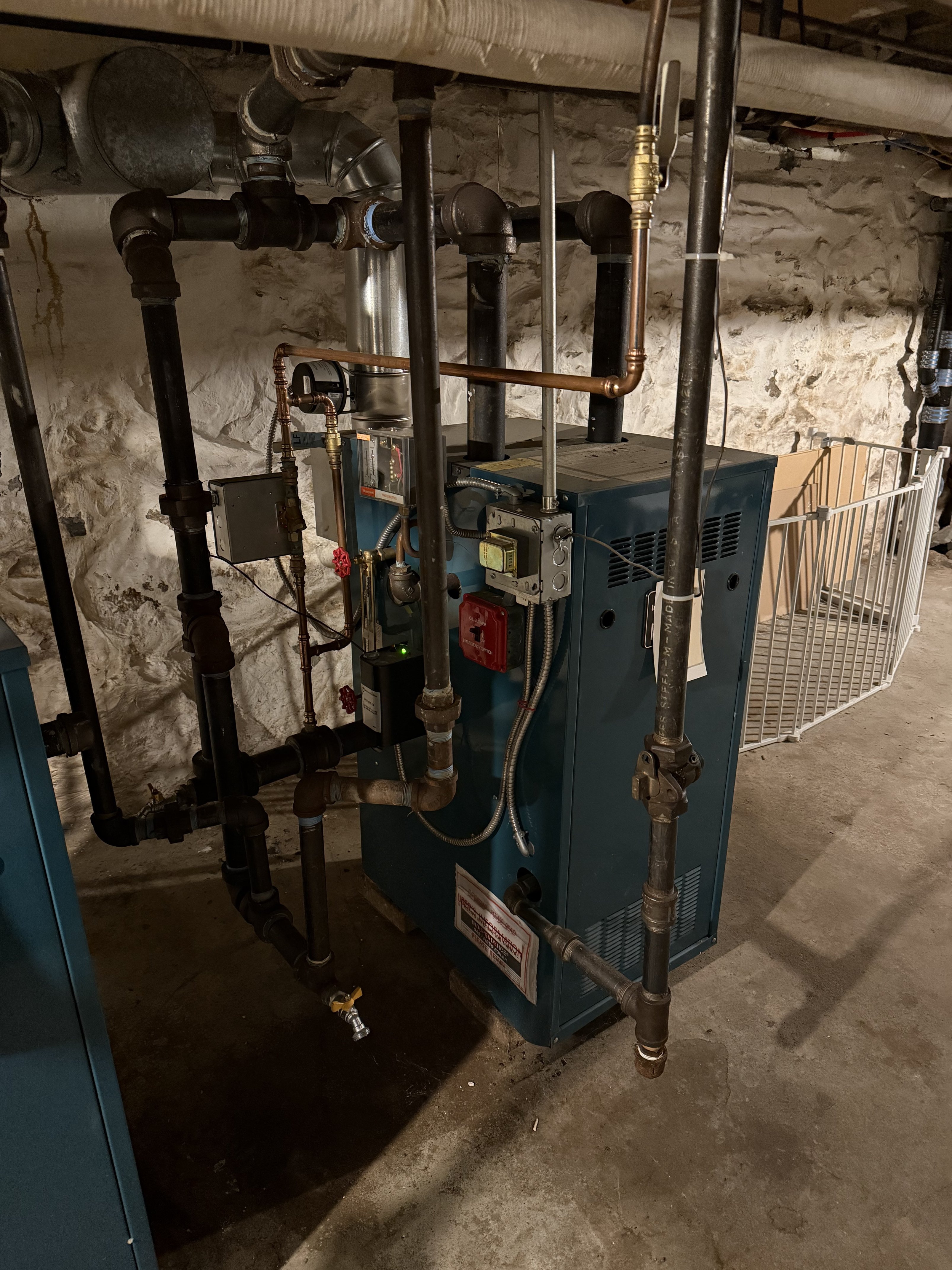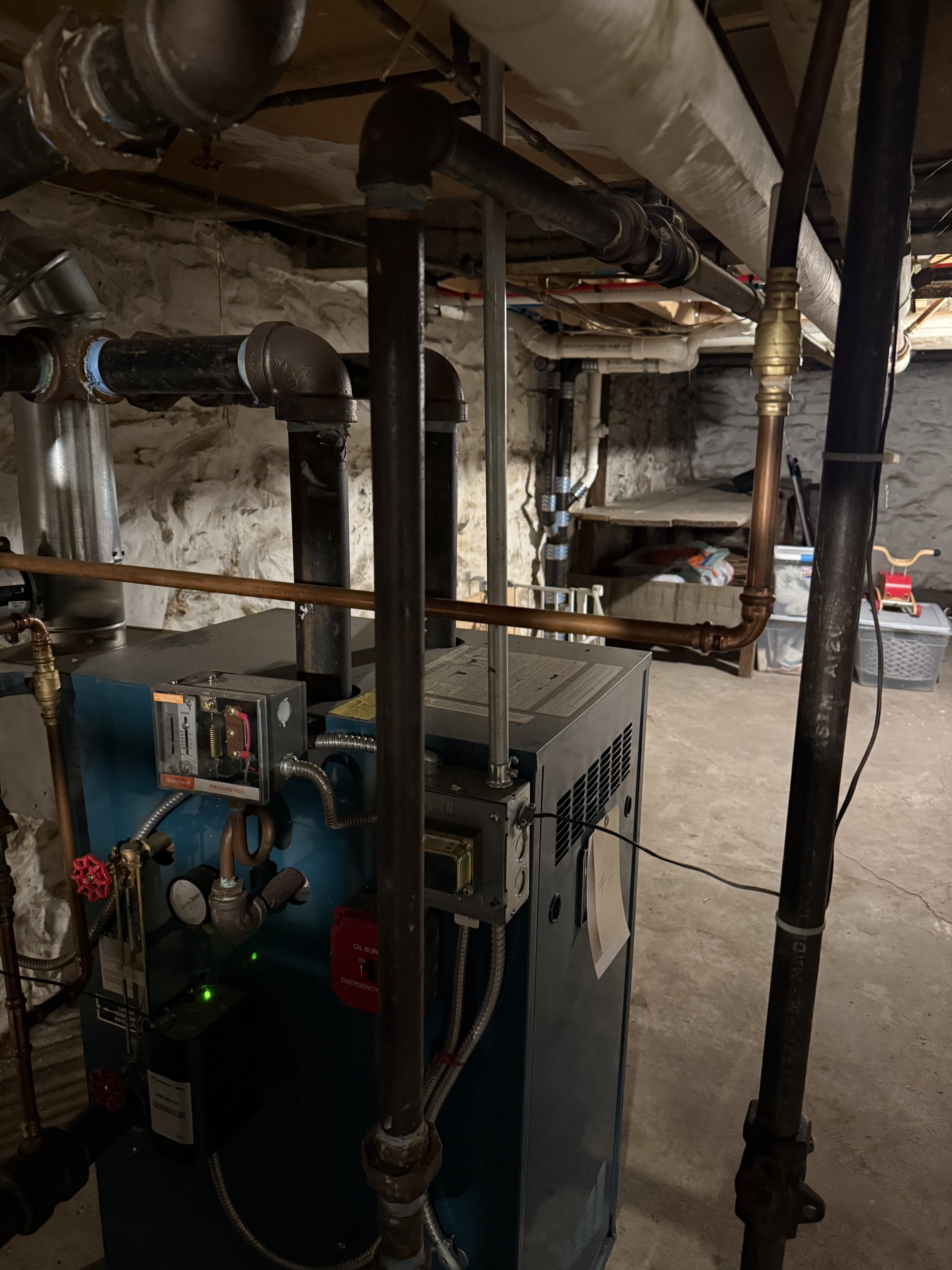 I've attached some photos of our boiler and our pipes in the basement. I've also attached a photo of one of our radiators.