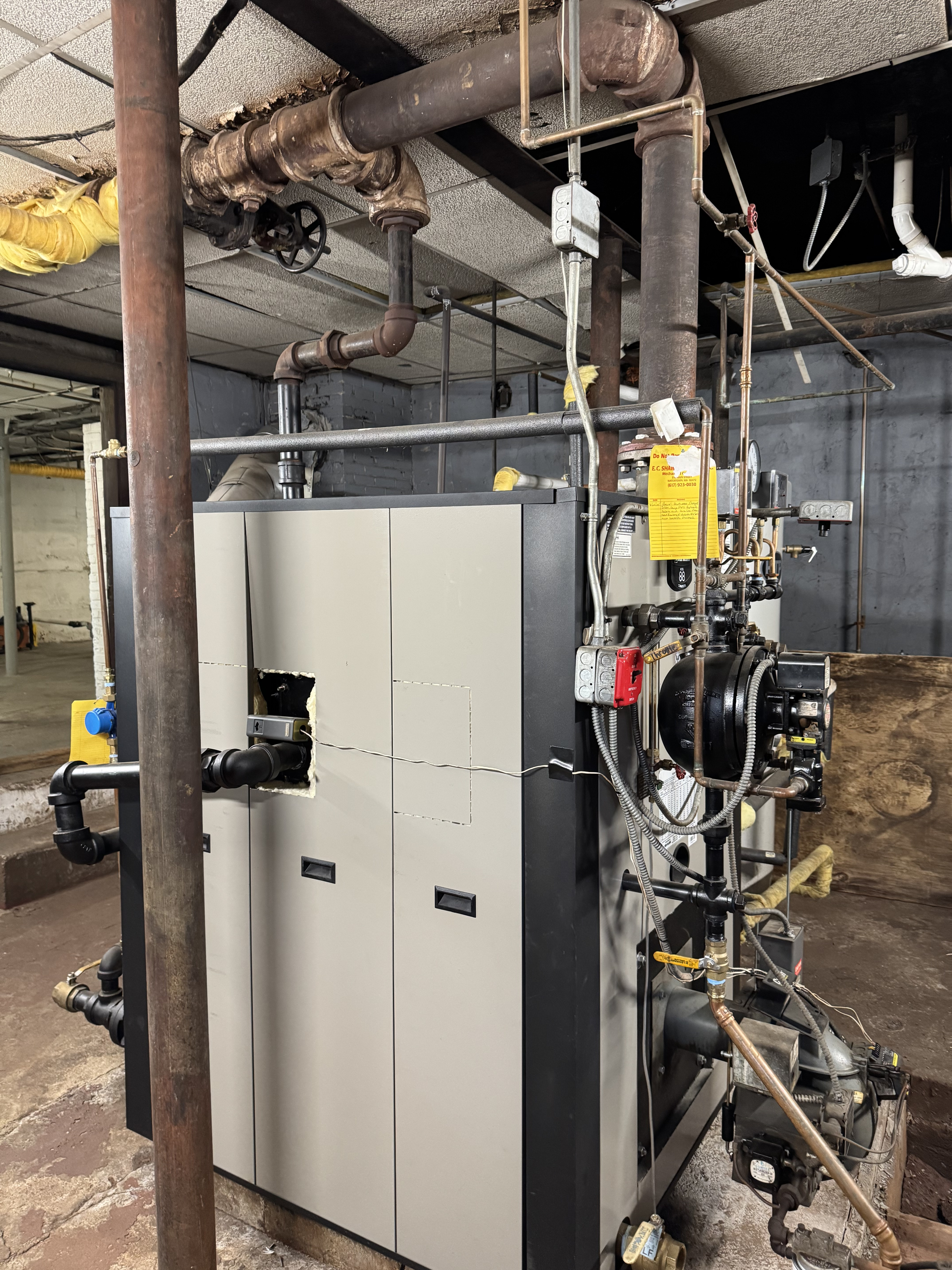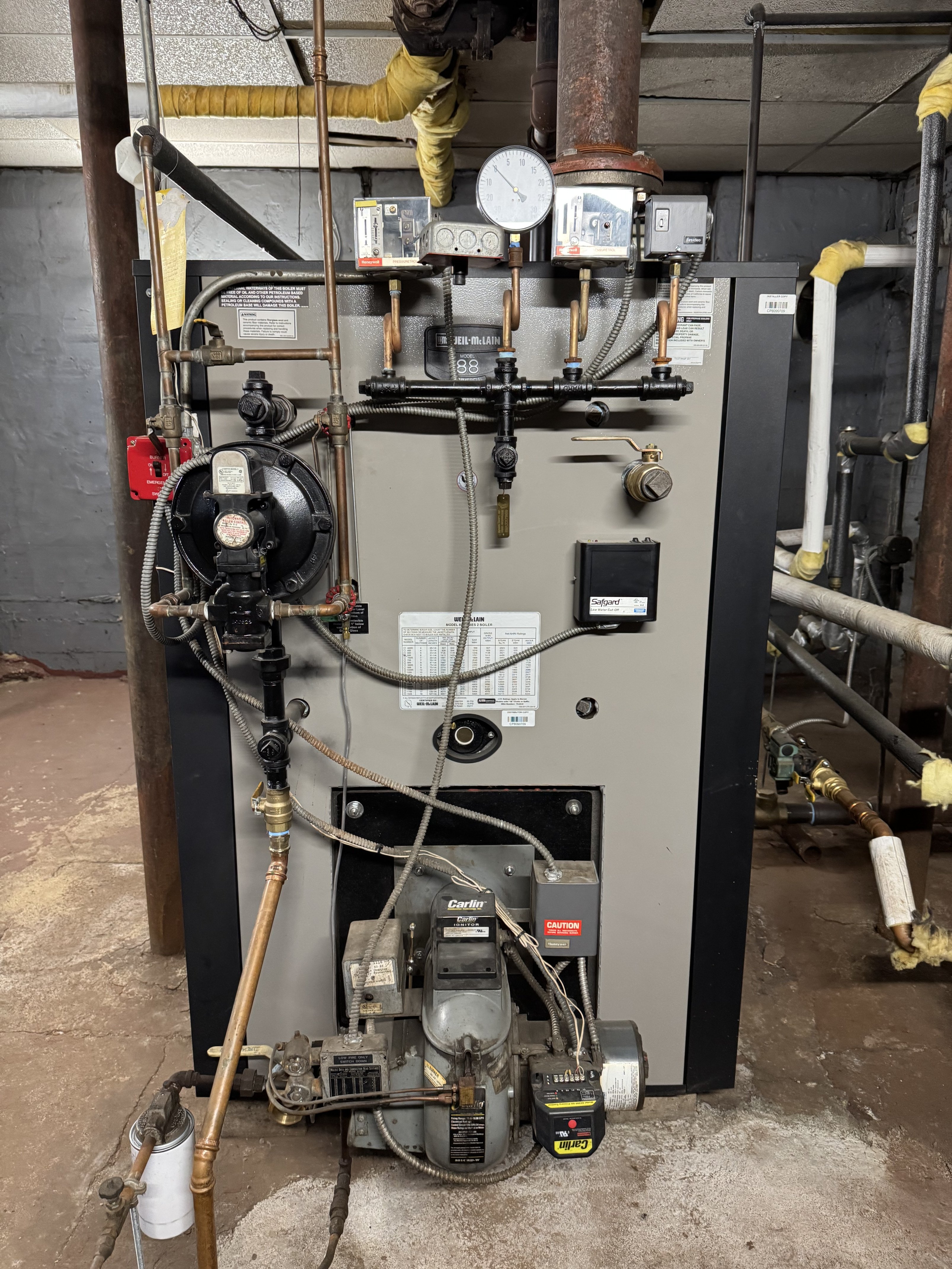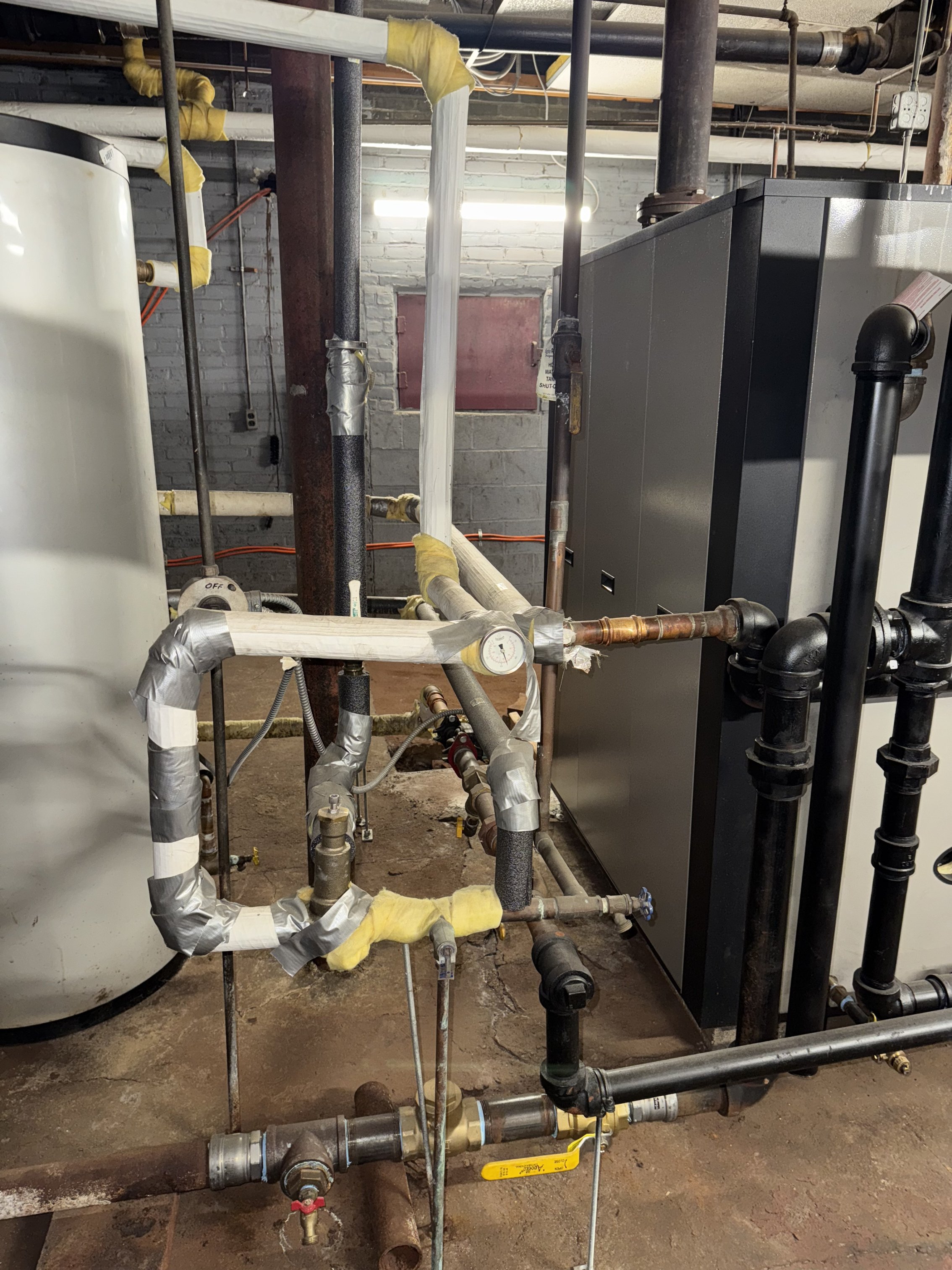 The units get so hot most them have shut off at least one radiator. I saw a unit that had one of the radiators removed and the other was shut off. Owner was still too hot. Does not help that they are on the 1st floor over the boiler room. Told the owner I believed the pipes in the boiler room were likely not insulated. I finally got a look at the boiler rom and I was half right. The main vent is also woefully undersized.