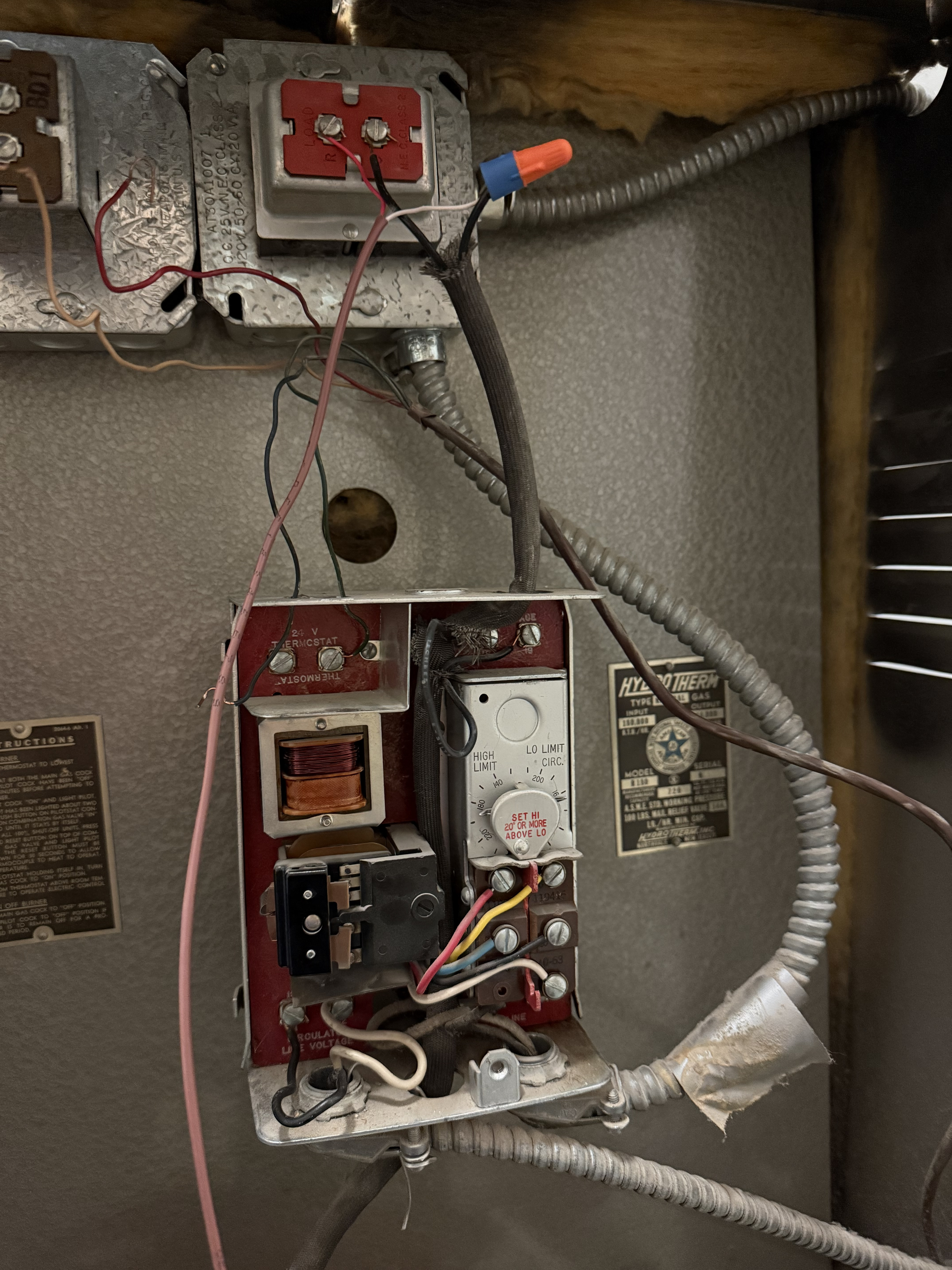 What's curious is that the boiler never had a tankless coil. You hardly ever see them out West here. I have only one customer that has one. Curious also is that the control is meant for a millivolt system, but the gas valve is 24 volt. Hydrotherm never made a boiler with a millivolt gas valve. The wiring from terminals B1 and B2 to the gas valve have been modified to add the 24 volts from the transformer.