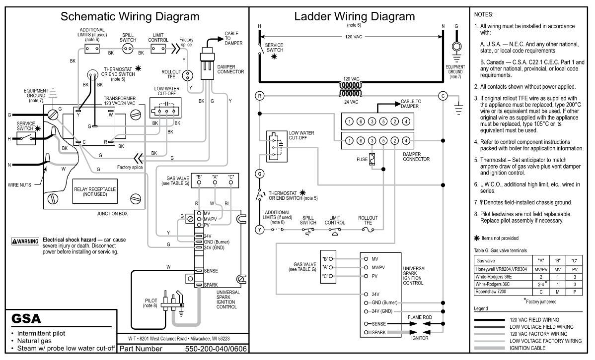 the terminals on the boiler might be labeled r g and c depending on what part the manufacturer used