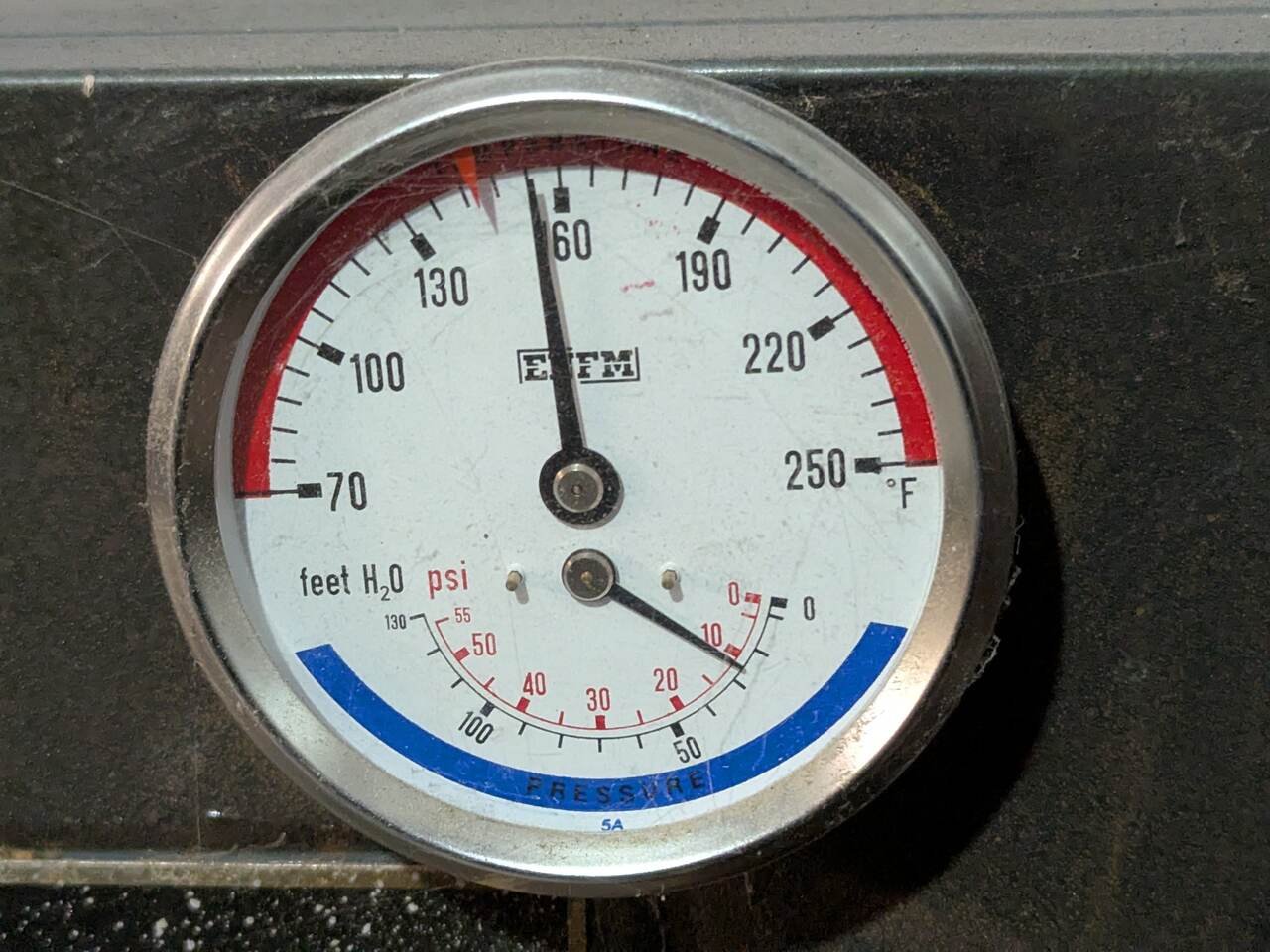 Weil-McLain 62 gauges say we are running 155-ish and ~12 psi