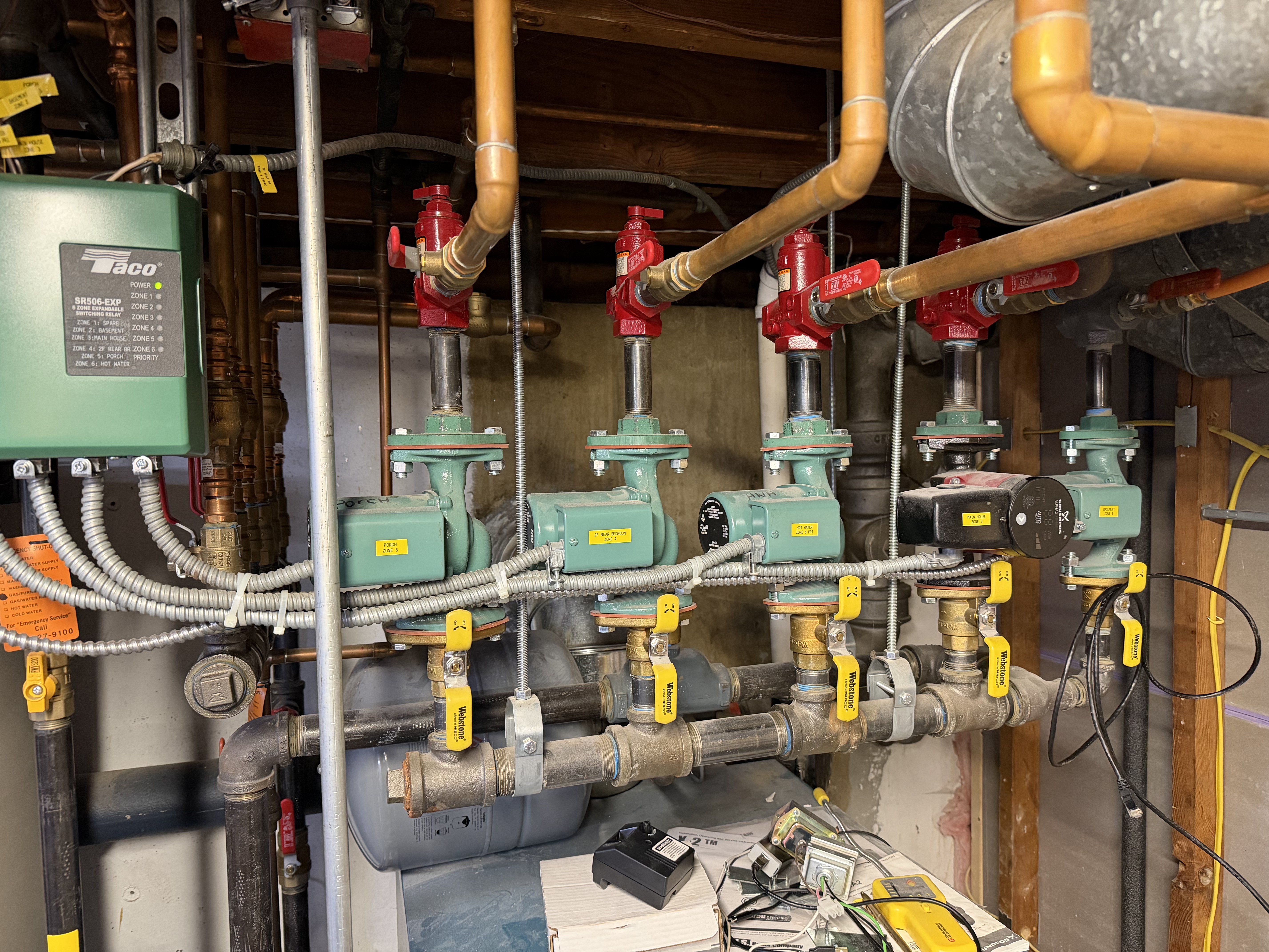 When the new boiler was first installed, we had all kinds of ghost flow issues, where hot water flowed to zones that weren't calling. This meant that even a room with the heat totally off would be 85 degrees. It took the plumber doing the install several consultations with other plumbers before they started putting check valves anywhere they could think of. Along the way, we had the transformer for the main board fail, as well as 2 of the circulator pumps — which I doubt is relevant, but figured I'd include for completeness. I'm unconvinced they understood the underlying issue(s), but a bunch of hasty valve installs seemed to solve the immediate issue of my house being a sauna, and we called it done.