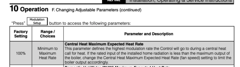 This setting basically lowers the boilers highest output, attempting to match boiler output with the actual building load. But it still goes to 105,000 when DHW calls.