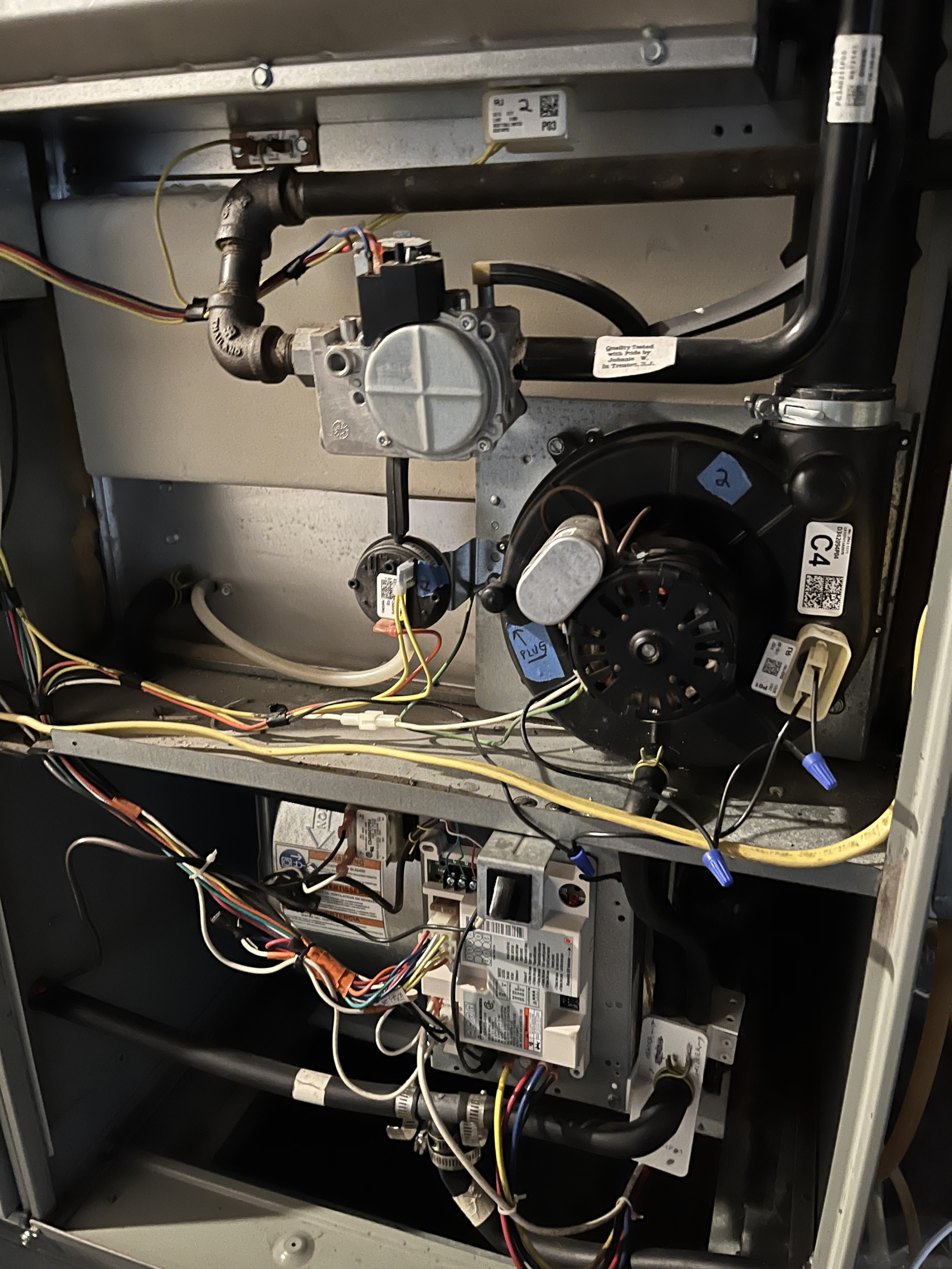 I removed the panel and could see the leak right away. I think its a big issue. It's leaking below and behind where the inducer is mounted - from the heat exchanger? I removed the inducer, all of the associated tubing, and also flushed the white collection box below the inducer where water collects before exiting the furnace. Photos attached. When I removed the tubing there were no signs of a blockage (nothing was "filled" and no water came rushing out).