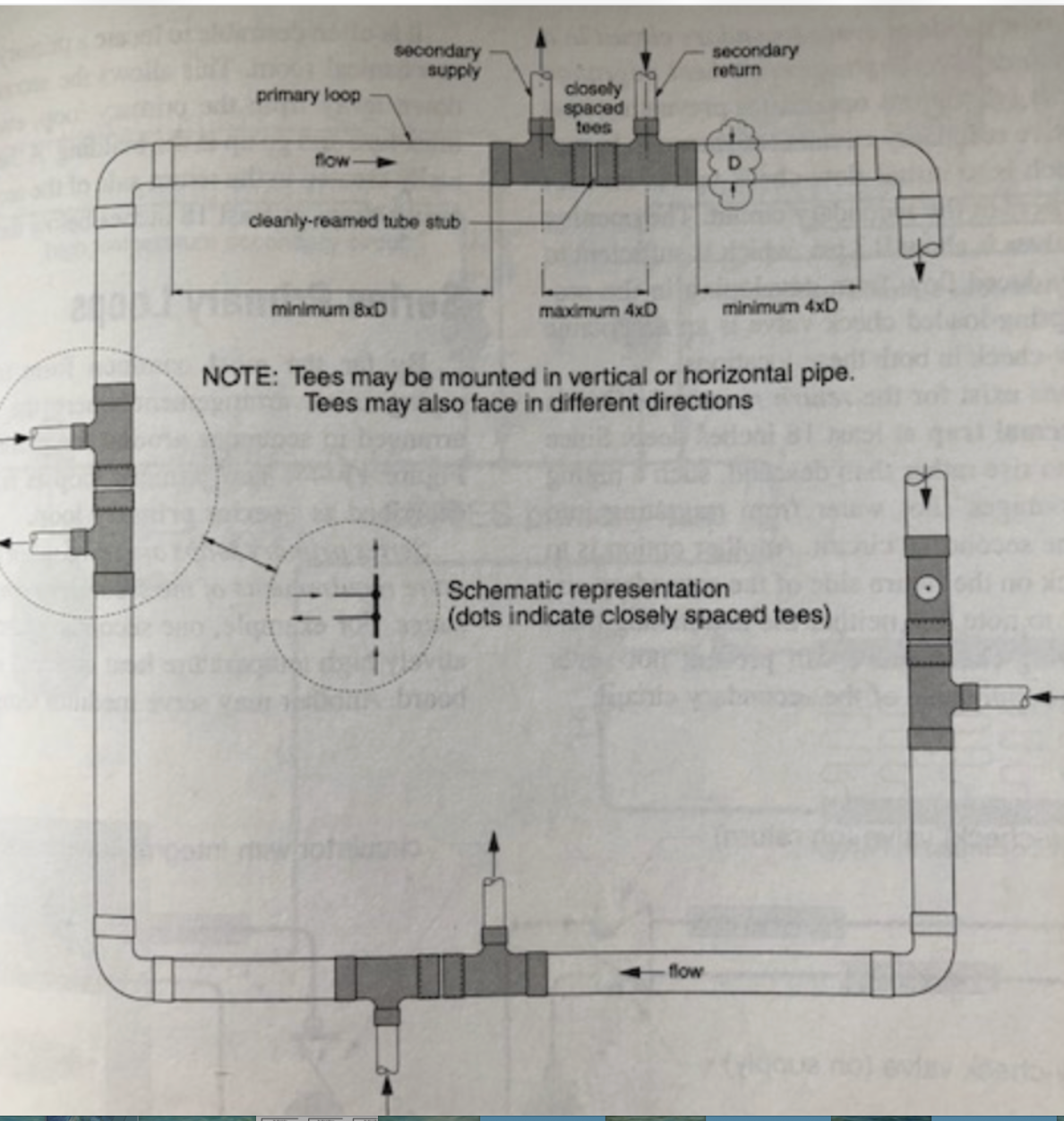 Here is the recommended p/s piping. Tees together with required spacing before and after the tees..