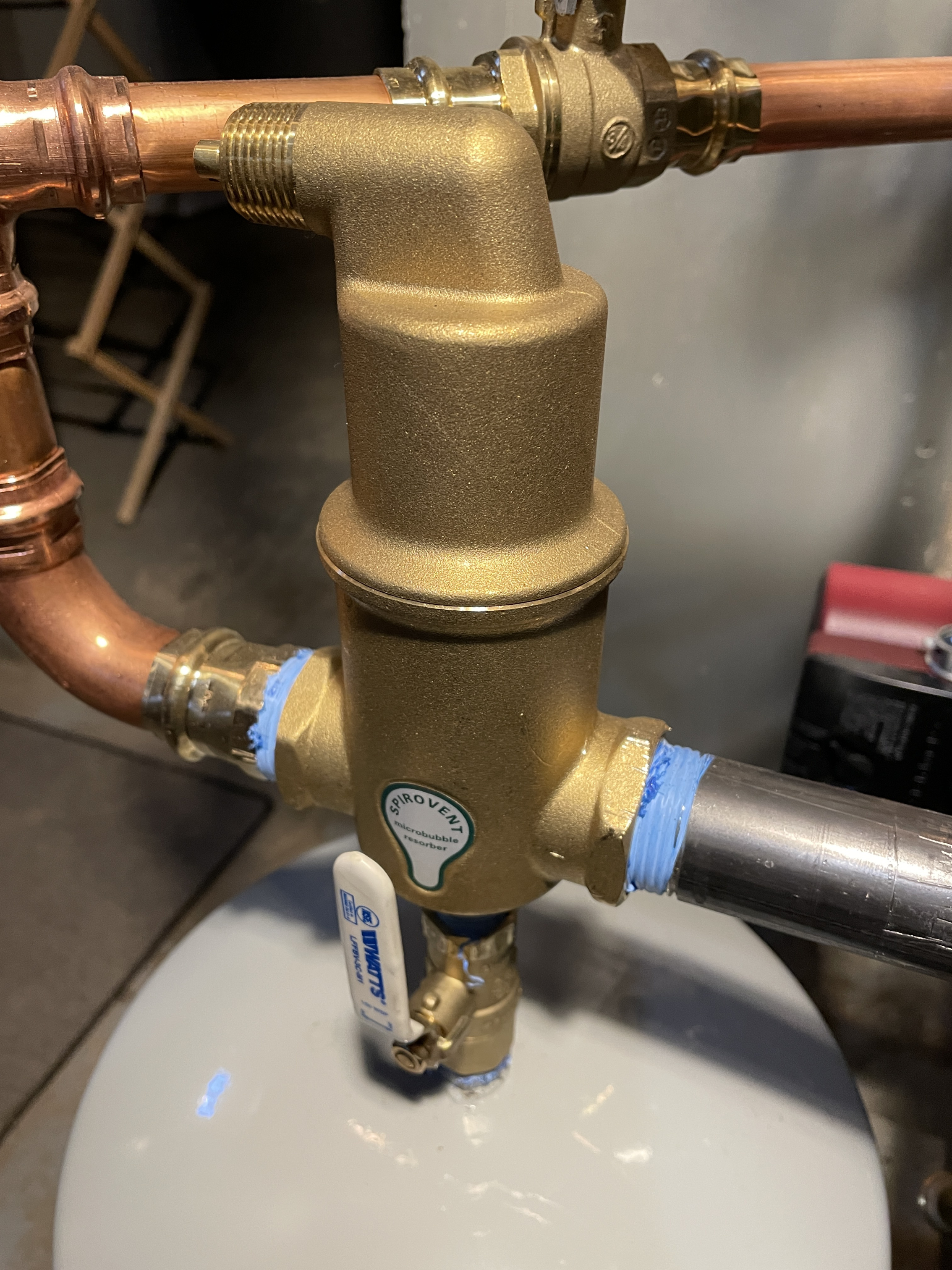 Yes, it has a microbubble air separator—see pic. Is that the thing that removes the air pockets and consequently lowers the water pressure?