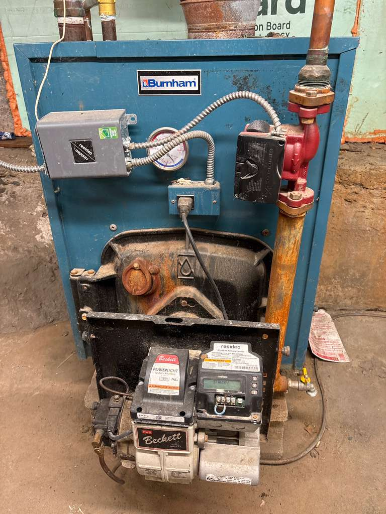The other major issue is the sloppy oil burner plumbing. The soft copper oil delivery line does not and would not allow for the boilers access door to be opened safely to clean the fire box, change the burner nozzle, replace the electrodes or adjust the electrodes for that matter. You need the woven wire mesh oil delivery hose. The filter screen in the oil burner is long overdue for cleaning as well.