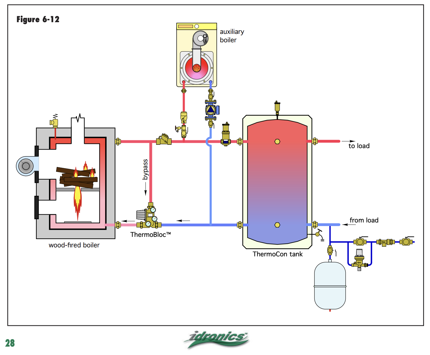When we do hybrid boiler piping with wood boilers , for example, a few controls monitor temperatures and switch one off the other on