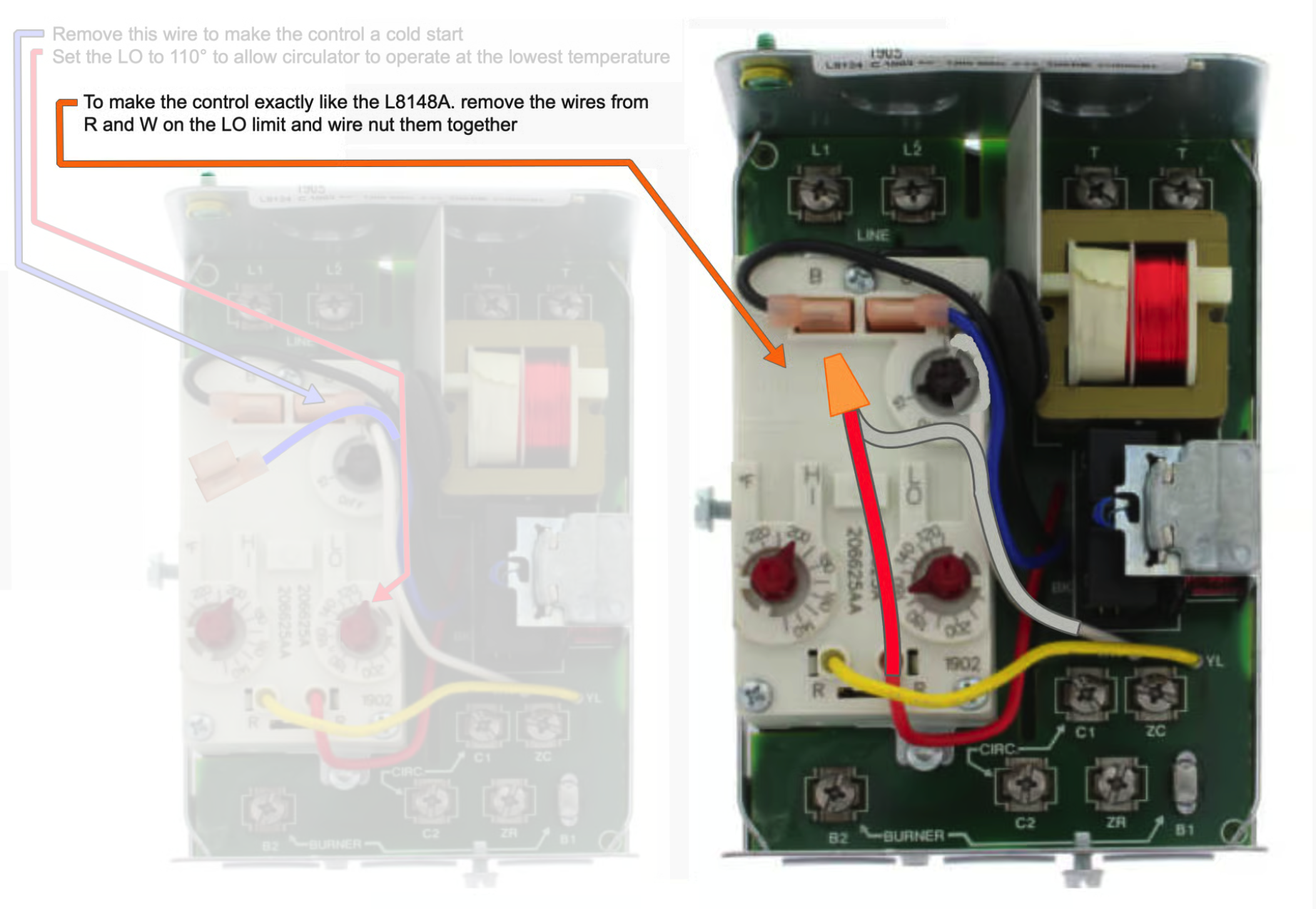 This is a way to rewire the existing control to be a cold start control. No new parts needed, just a wire nut.