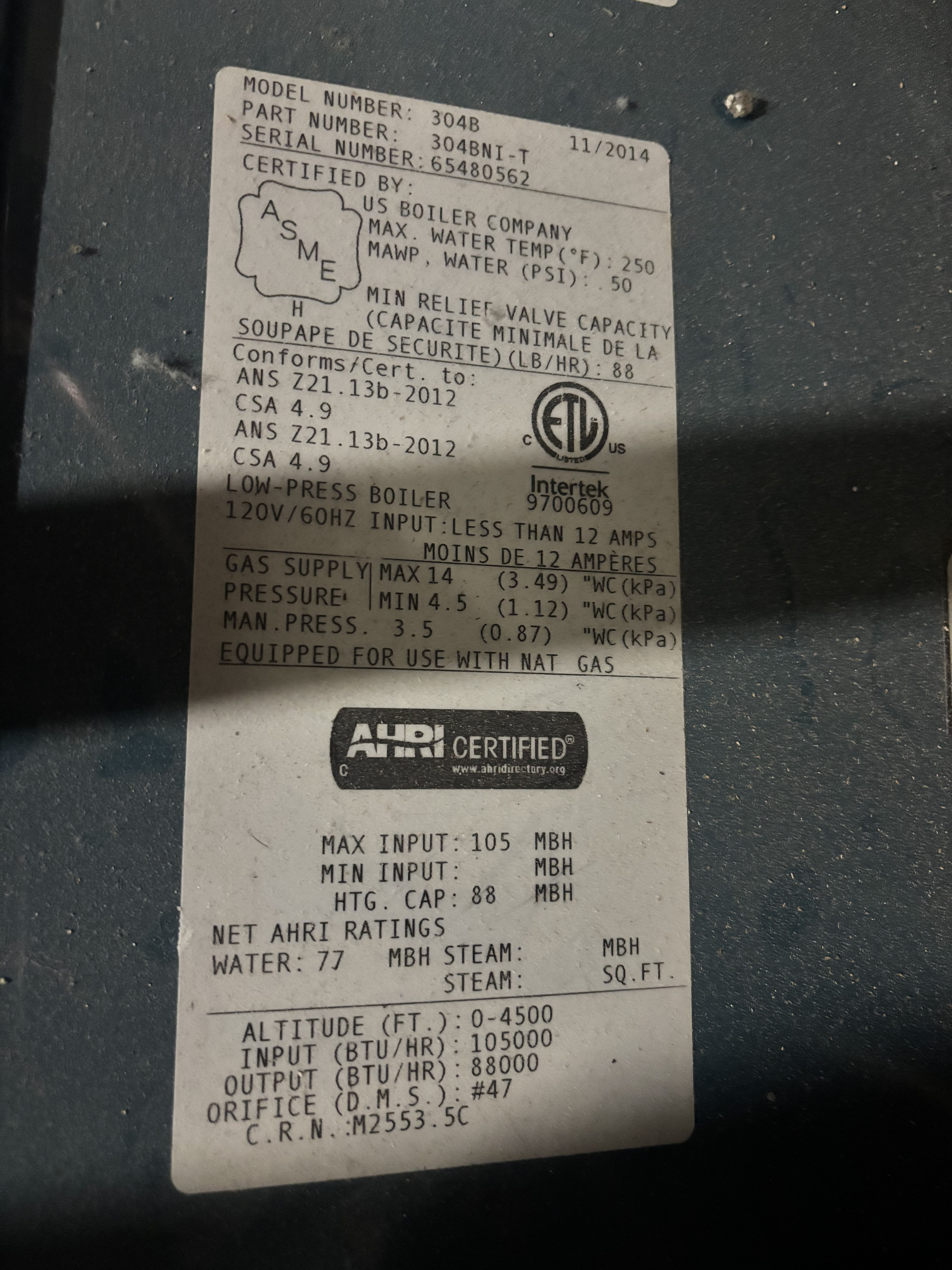 I am currently doing home renovations and have acquired two new cast iron radiators to replace the existing baseboard hydronic radiators in my living room and dining room. I have sized them based on the marks left on the floor from prior. I will also be looking to replace a few of the isolation valves with thermostatic radiator valves (for the few in the bedrooms). With the new cast iron radiators installed I will have a total of 9 cast iron radiators (7 on the first floor, 2 on the second). The existing baseboard radiators appear to be on one zone, the cast iron on another. Based on the manufacturer catalog the total for all radiators add up to 282 EDR (approximately 50k BTU’s I think). The existing supply pipe is 2” steel. The 1” supply to baseboards is tapped off that. Then both with separate returns back into circulating pumps and back into the boiler. My question is, if I were to redo the supply and return pipe for the entire system (as I will already have to run new lines for the new cast iron radiators I’m adding), what size pipe would the supply (and branch lines) need to be as well as the return lines? I am just learning the system and operations so forgive me if my math is completely wrong and please help me make sense of this or if I am missing information. Would a 1” supply with 1/2” branch lines be sufficient for the entire system? I can provide a break down of all radiator sizes and rooms if needed.
