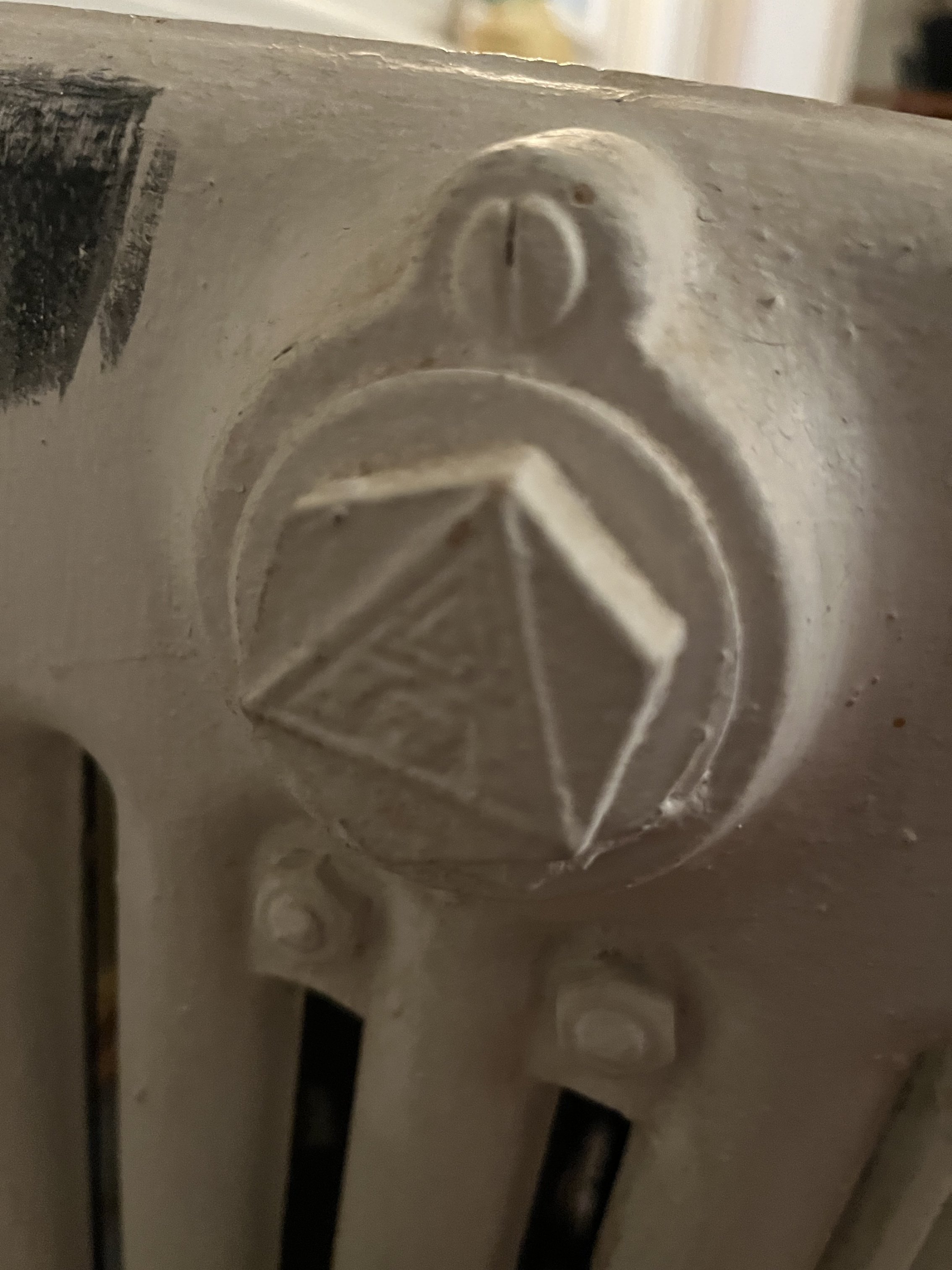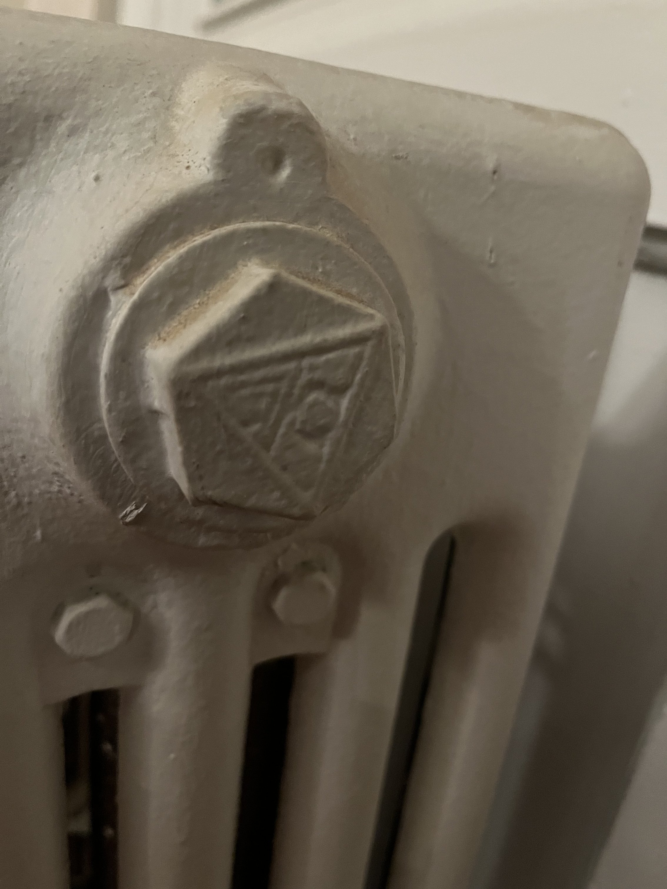 Hello fellow steam brothers, need help identifying this brand Rad as I have a few. Fow reference, 5 tube rad measures 8" in width and 25" in height, 15 sections at ~ 38" in length. Note tap port/point just above the end plug. Looks like 1920s to 1930s styling similar to Arcos. Top end plug has a triangular shaped logo, might be an A plus other figures IDK. Pics are attached.