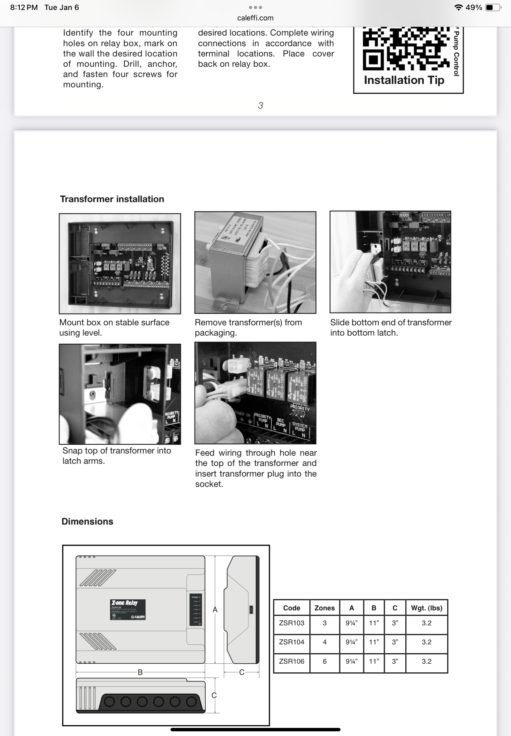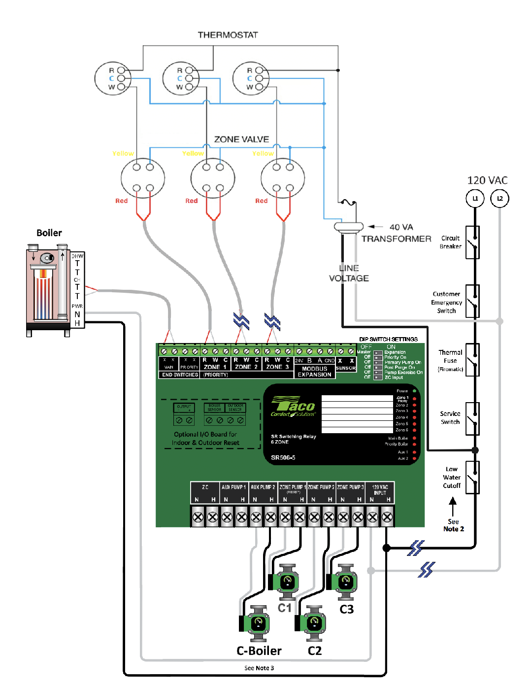 I am installing a new Taco model SR503-5 - 3 Zone Switching Relay.