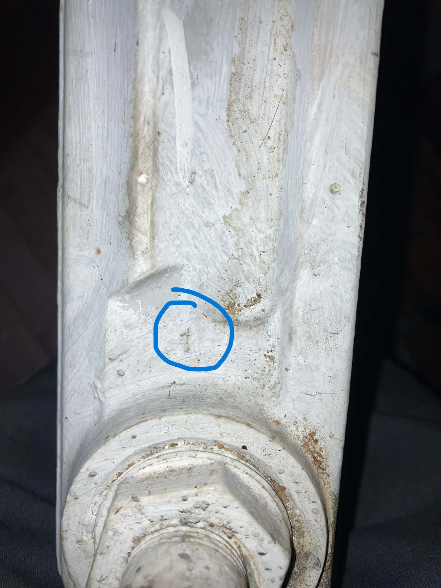 @Steamhead Must be a chunk of paint, I don't see any lettering around the bleeder, but there's a "1" at the other end of the section. Other sections are numbered "2", others are numbered "3"