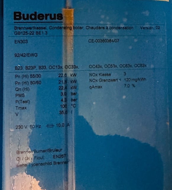 I have a Buderus GB125-22 oil‑fired condensing boiler.