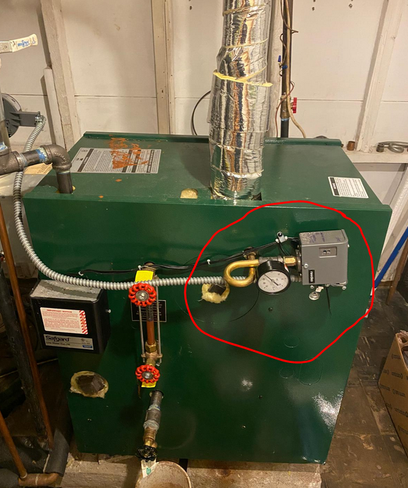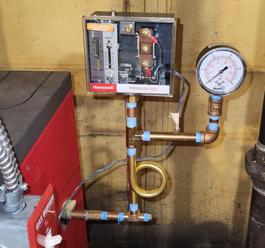 And in the meantime see if you can turn the pigtail and pressure control so that it is correctly oriented — and dial the cutout pressure down to 1 psig.