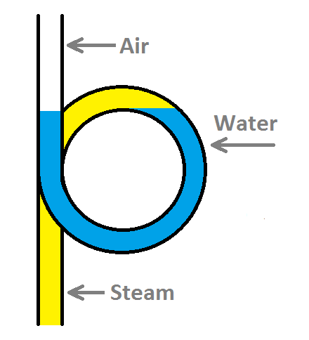 Water will fill the pigtail after it is oriented correctly, from the condensation of steam within it