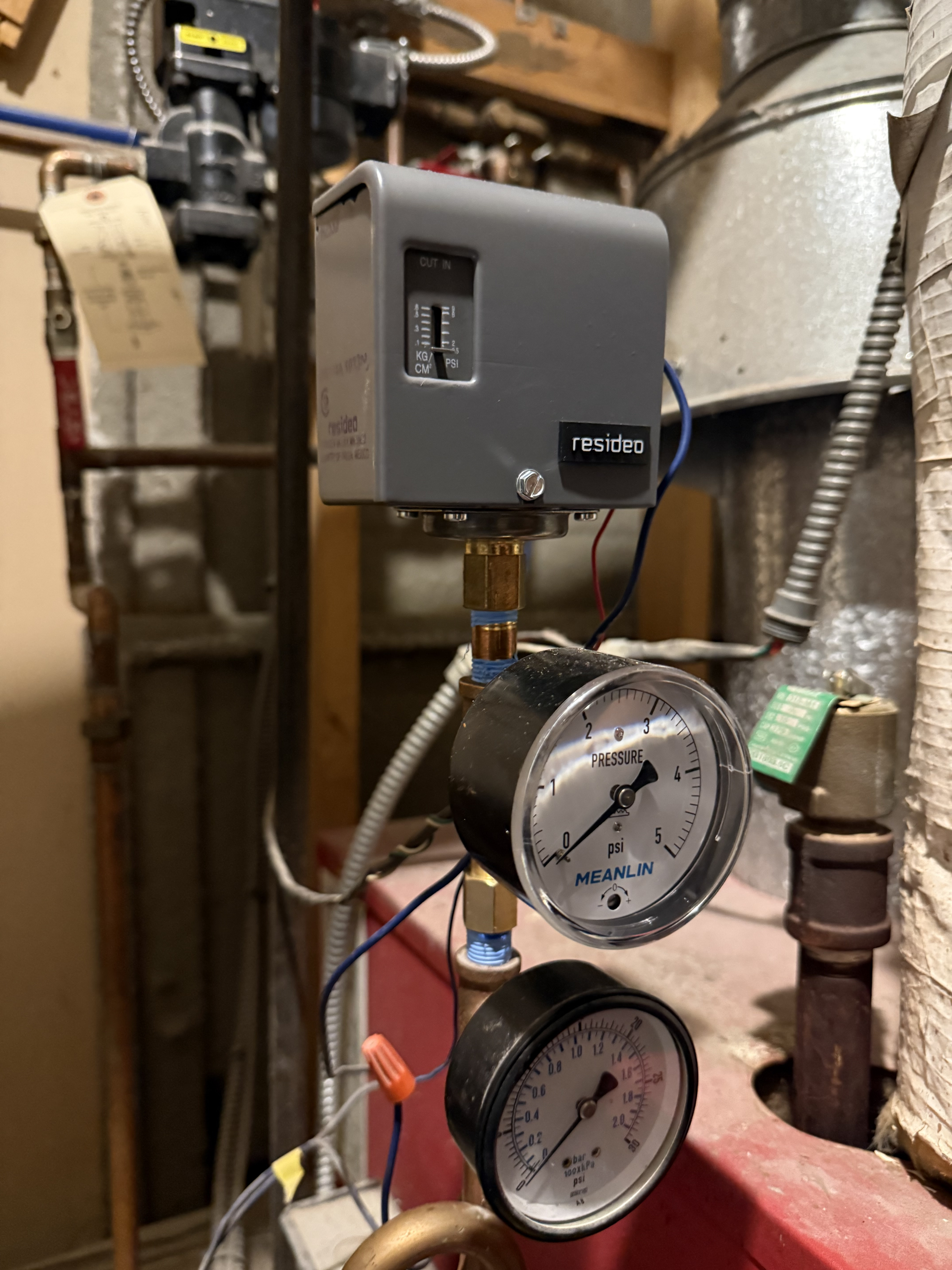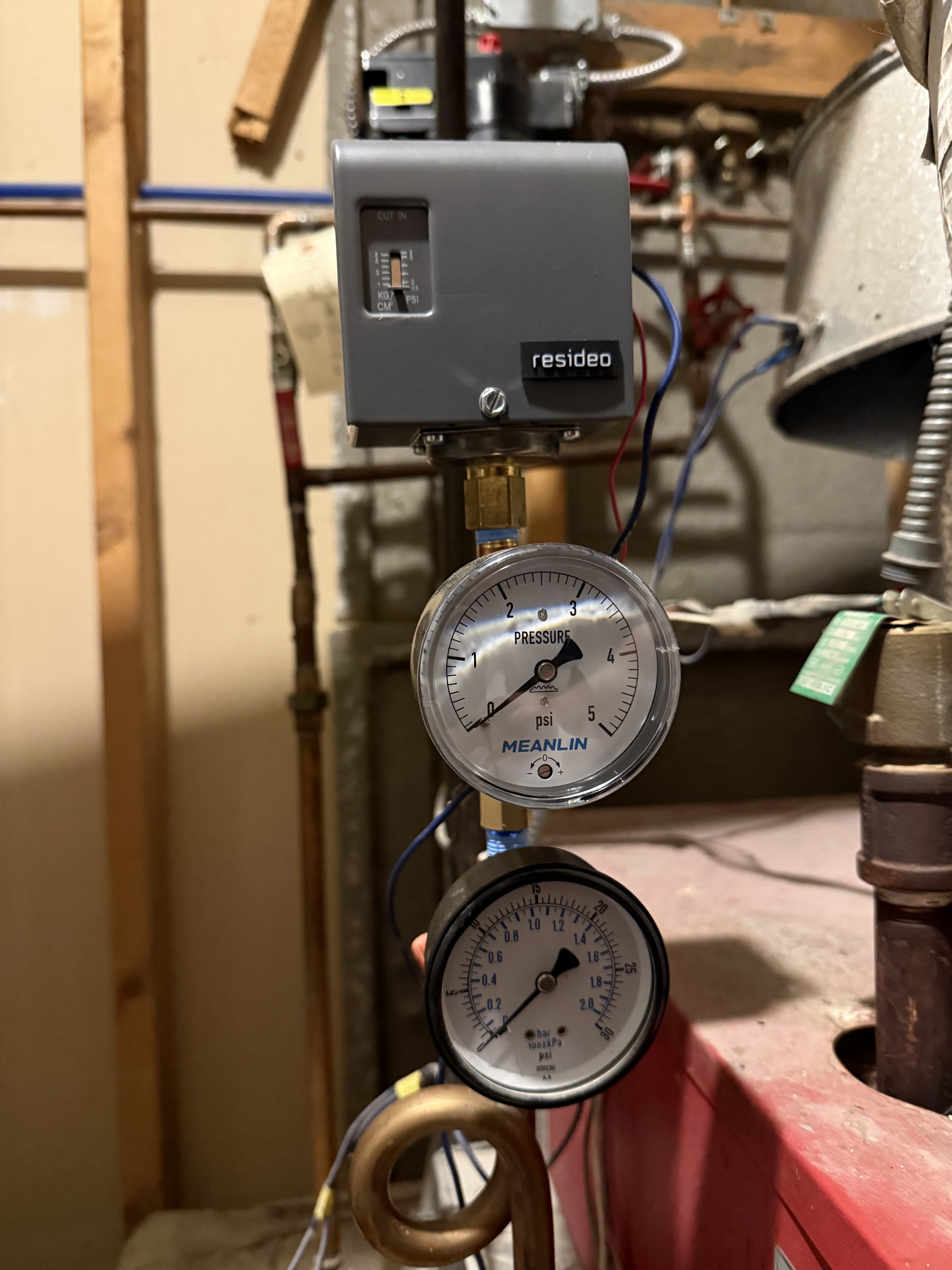 cleaned pigtail then added a tee along with swapping to more sensitive pressuretrol. 0-5 gauge reads less than the 0-30 gauge: