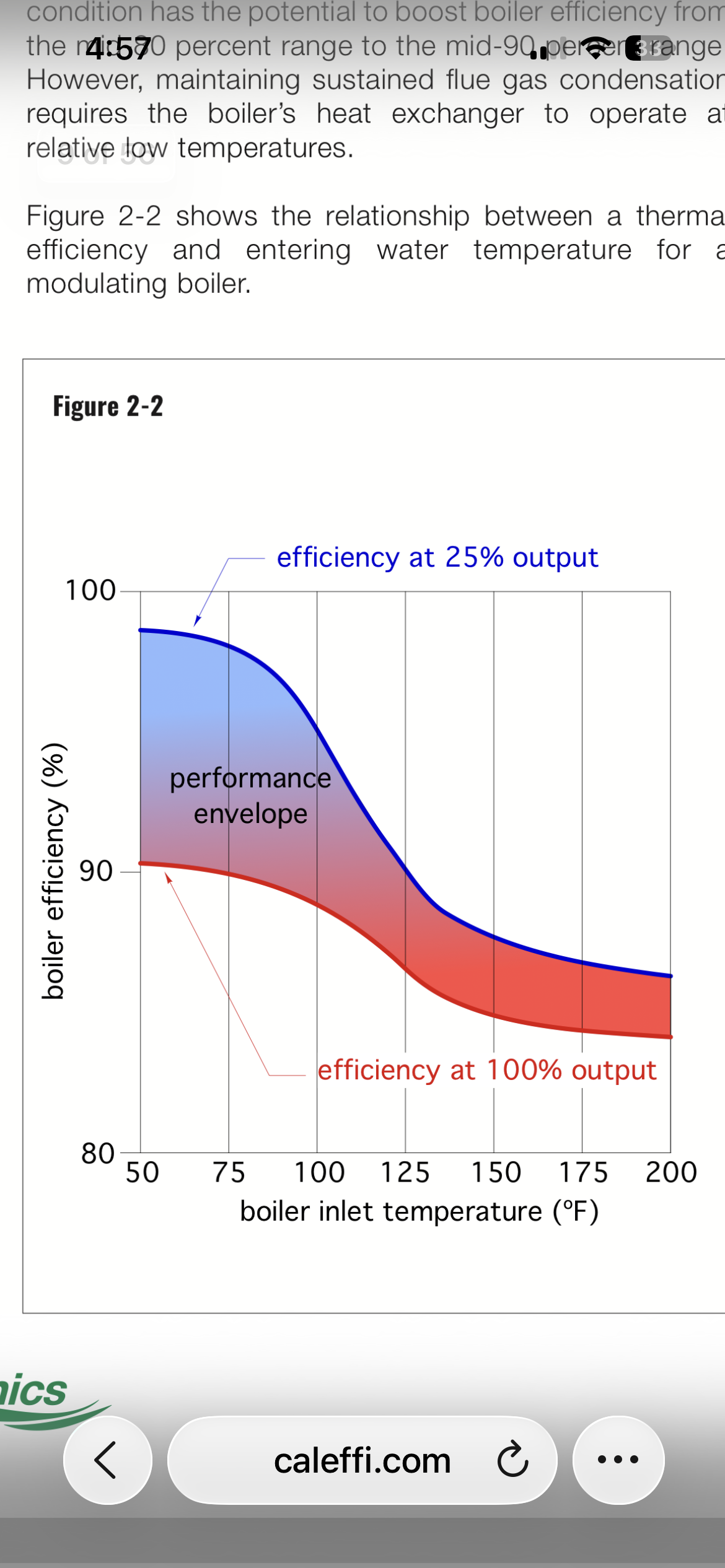 Low return and turned down burners gets you into 90%+ efficiency. 50 degree return at 25% modulation is at the top efficiency