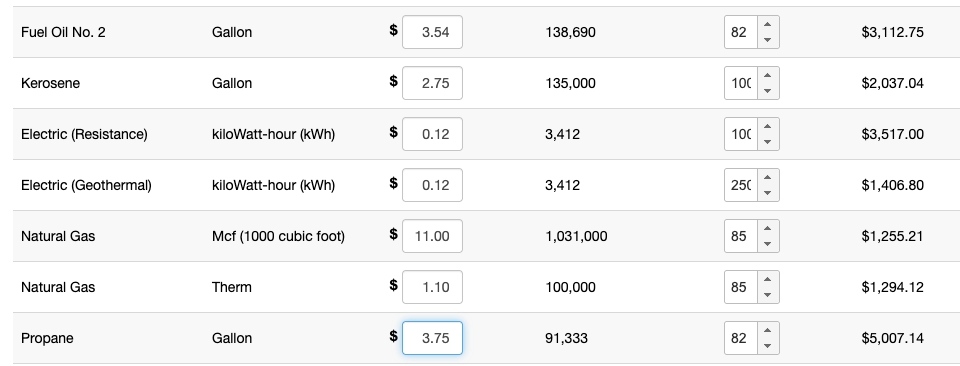 Thanks everyone for the responses. Since a couple folks mentioned fuel prices: currently we pay $3.29/gal for oil (capped contract price from July) and just got a 200+ gallon propane delivery at $2.60/gal last week.