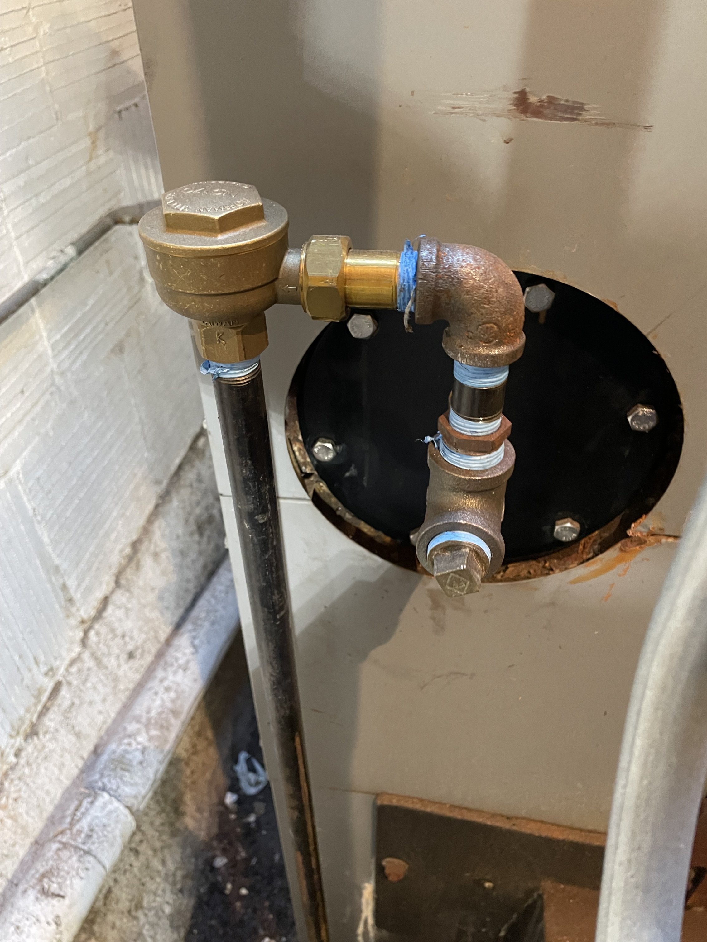 Has anyone seen this before? 1/2” Steam trap only slightly above water line tapped into a control plate. I assume the original installer was concerned about the boiler / system flooding? Peerless Lc-4.