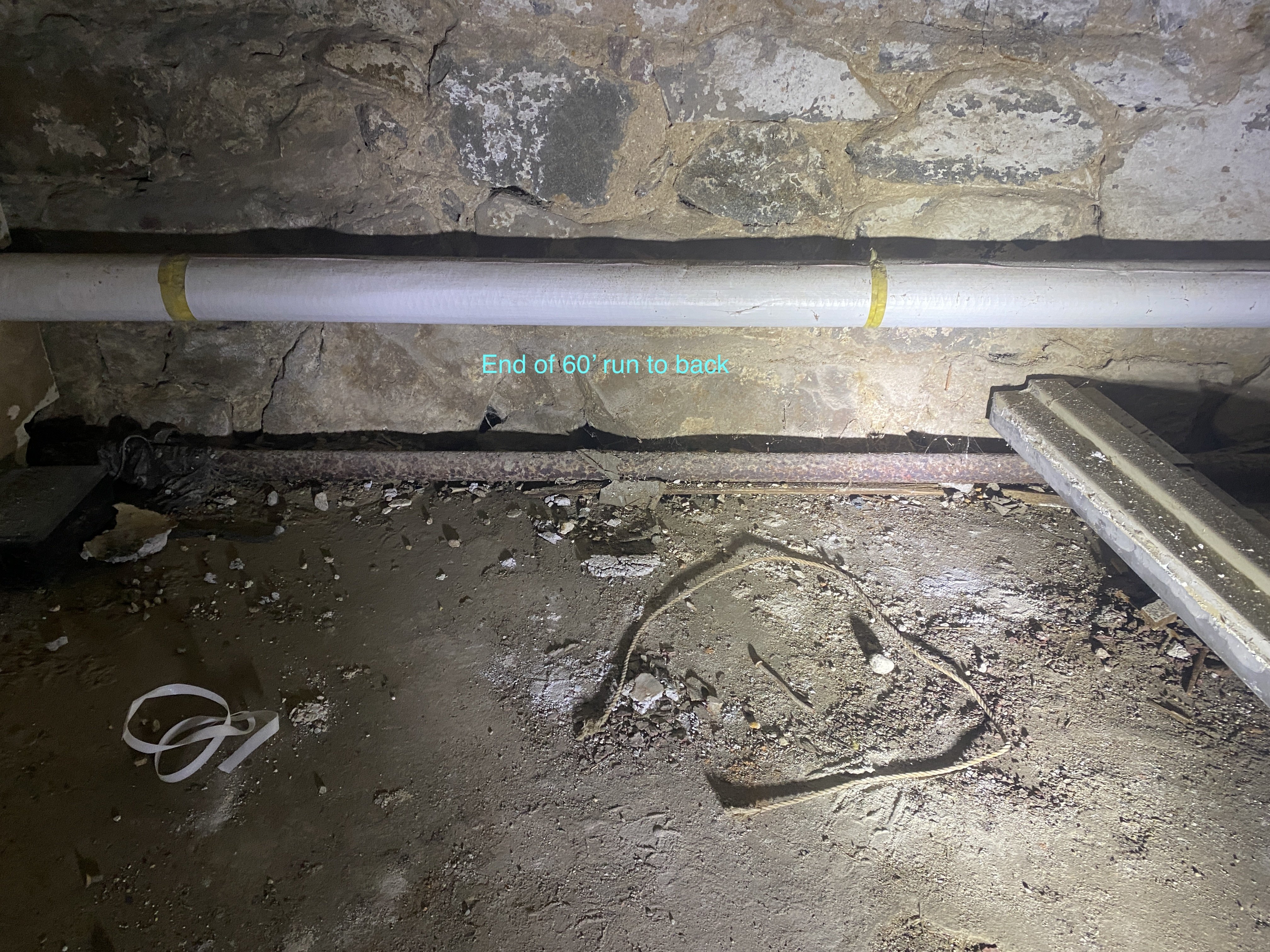 IT runs about 60’  from the front of the building to the back and then over 15’ and then under the slab for 8’ to the boiler.