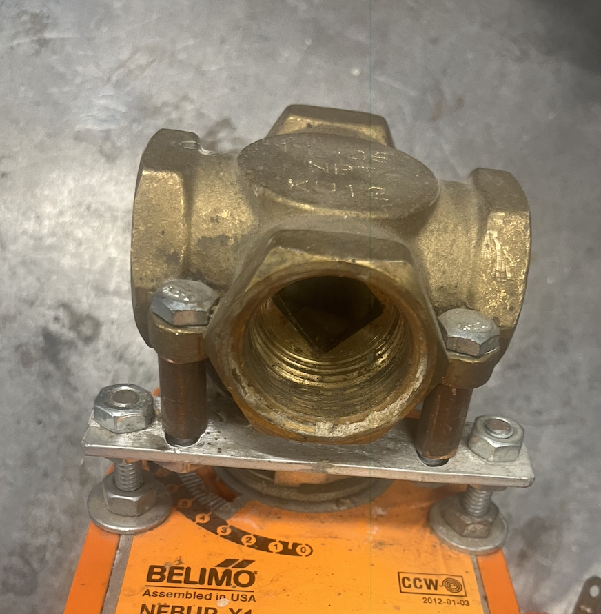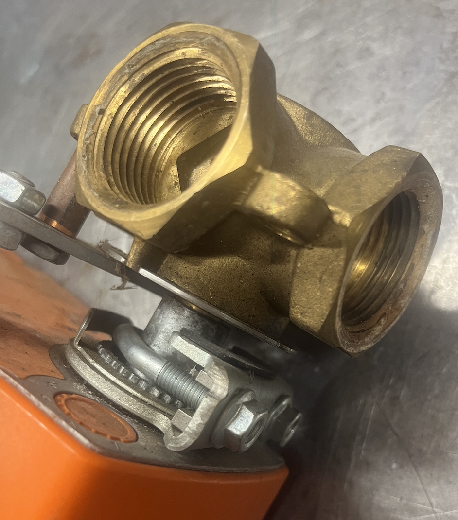 A piece of flat metal, some spacers and modify a 1/4 pipe coupling to go over the valve shaft. Th U bolt comes with the actuator. It pinches the split coupling against the flat on the valve shaft.