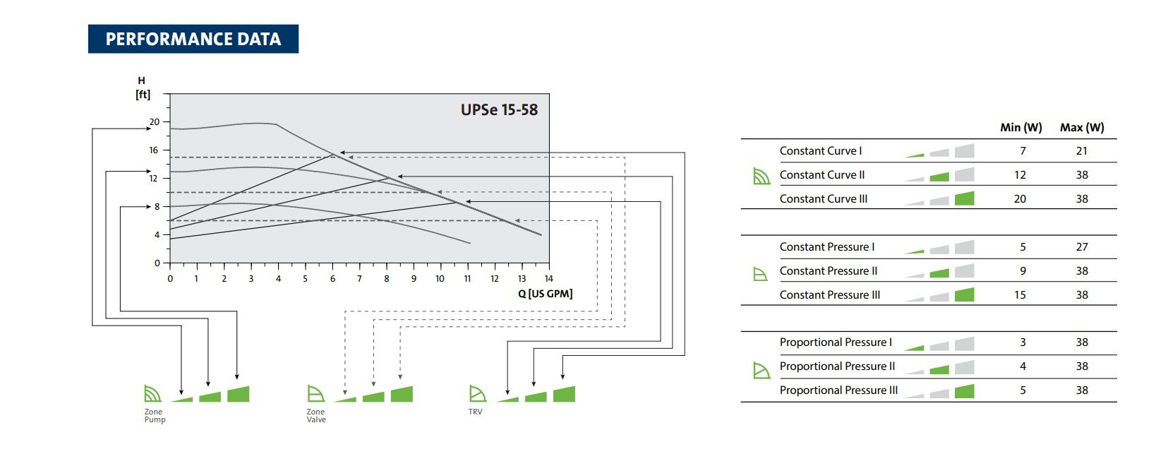 Ideally you want to run in the middle 1/3 of the curve. So that 15-58 is comfortable in the 5-11 gpm range. Head depends on which speed. So about 8 gpm at 12' on speed 3.