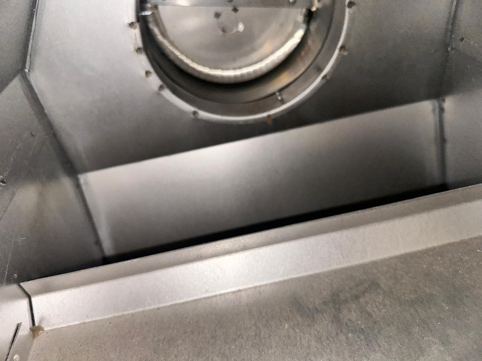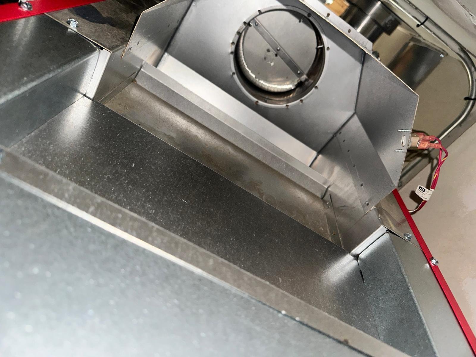 Connection between boiler flue and power venter is not sealed.