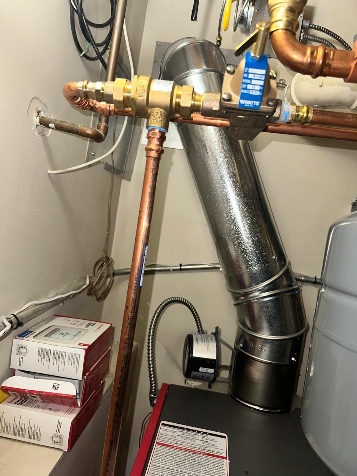 I recently got a gas boiler with power venter installed. Boiler model is Crown - AWR140ENSZ2PSU and Power venter is Field control SWG 6S. This newly installed system feels really loud from the day it was installed. I noticed that the connection between flue pipe and the vent from power venter does not appear to be sealed. Is this supposed to be open like in the picture? I believe this unsealed portion is the major reason for the excessive noise. I am also concerned if this could be hazardous.