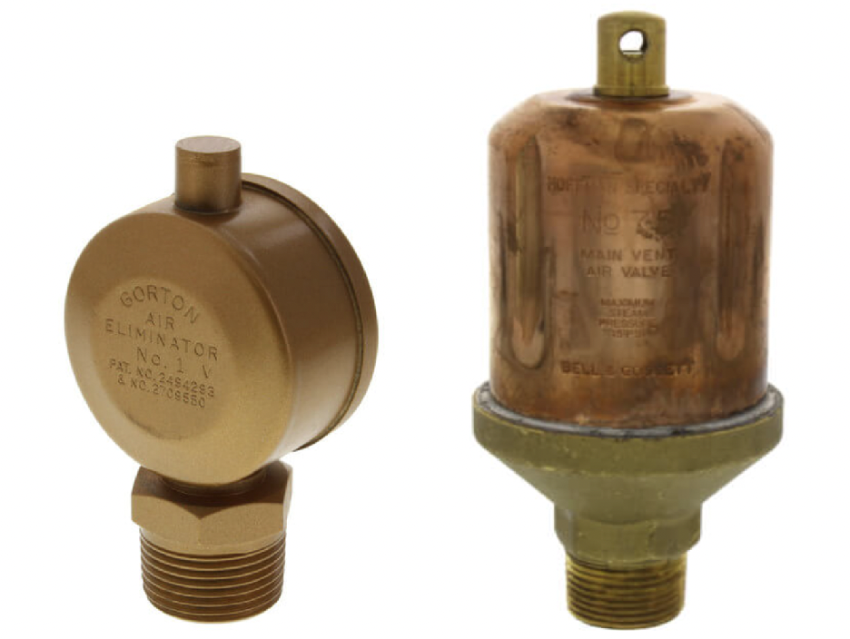 Radiator Vent. Here are two typical radiator vents one is adjustable and the other is a fixed orifice. the idea of this part is to allow air to leave the radiator so steam can enter the radiator. Where there is air there is no steam, so removing the air is an important factor in getting the radiator hot. once the steam is in the radiator, the vent should close as a result of the high steam temperature.