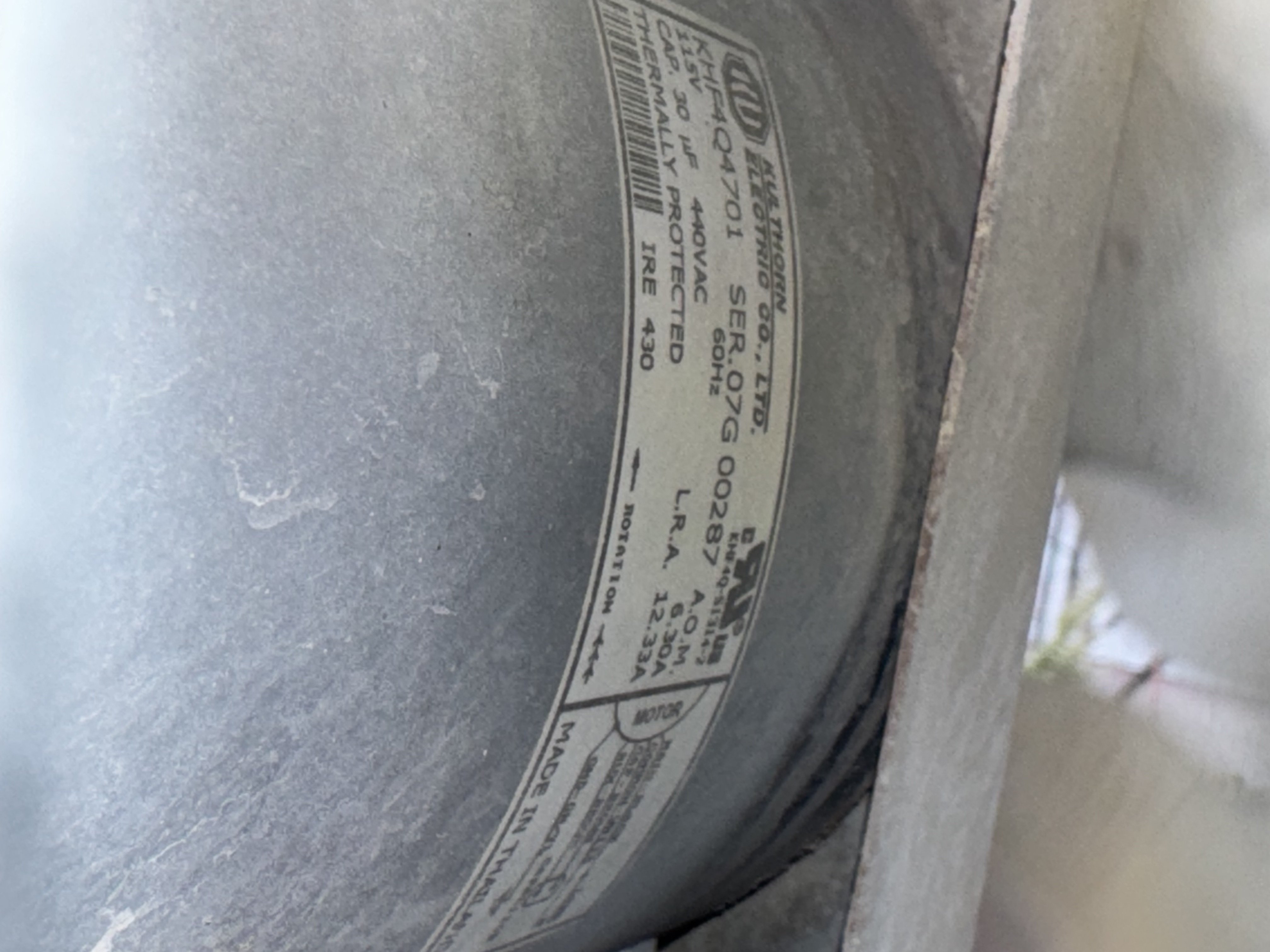 The pictured motor is defective and the only information on the nameplate is the part # KHF4Q4701, 115 voltage, and 6.3 amps. With no frame size, or RPM we are having a hard time finding a generic replacement. The motor is out of a sidewall ventilator, with no manufacturer’s nameplate. Any assistance would be much appreciated. Thanks to all.
