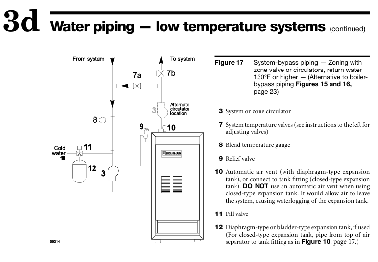 However, the manual states, “Figure17 however, is not suitable for radiant heating applications because it does not protect the radiant system from possible high water temperature.”