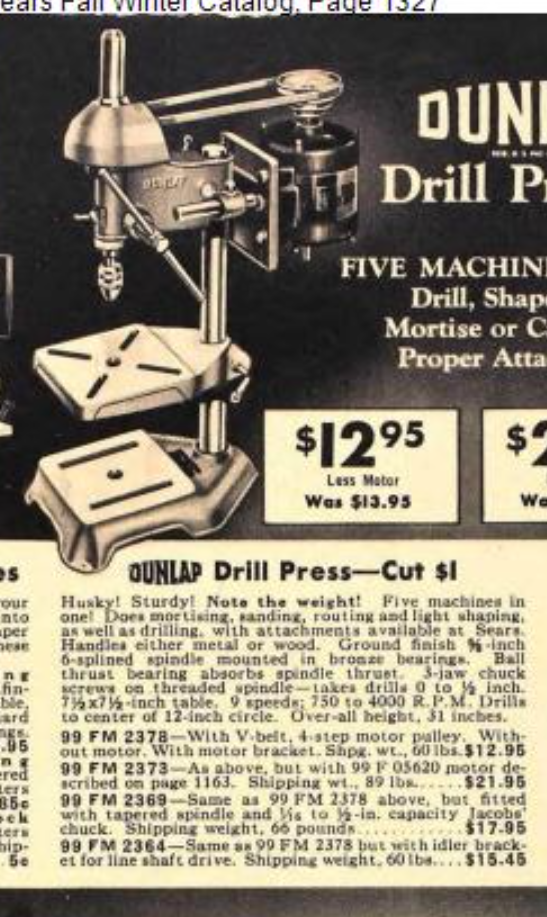 now you've got me looking at 1940's sears catalogs to find coldspot branded cooking appliances haven't found them yet but did find the drill press i inherited from my grandfather in the 1940 catalog. it was made by atlas press. he said he bought it in 1946