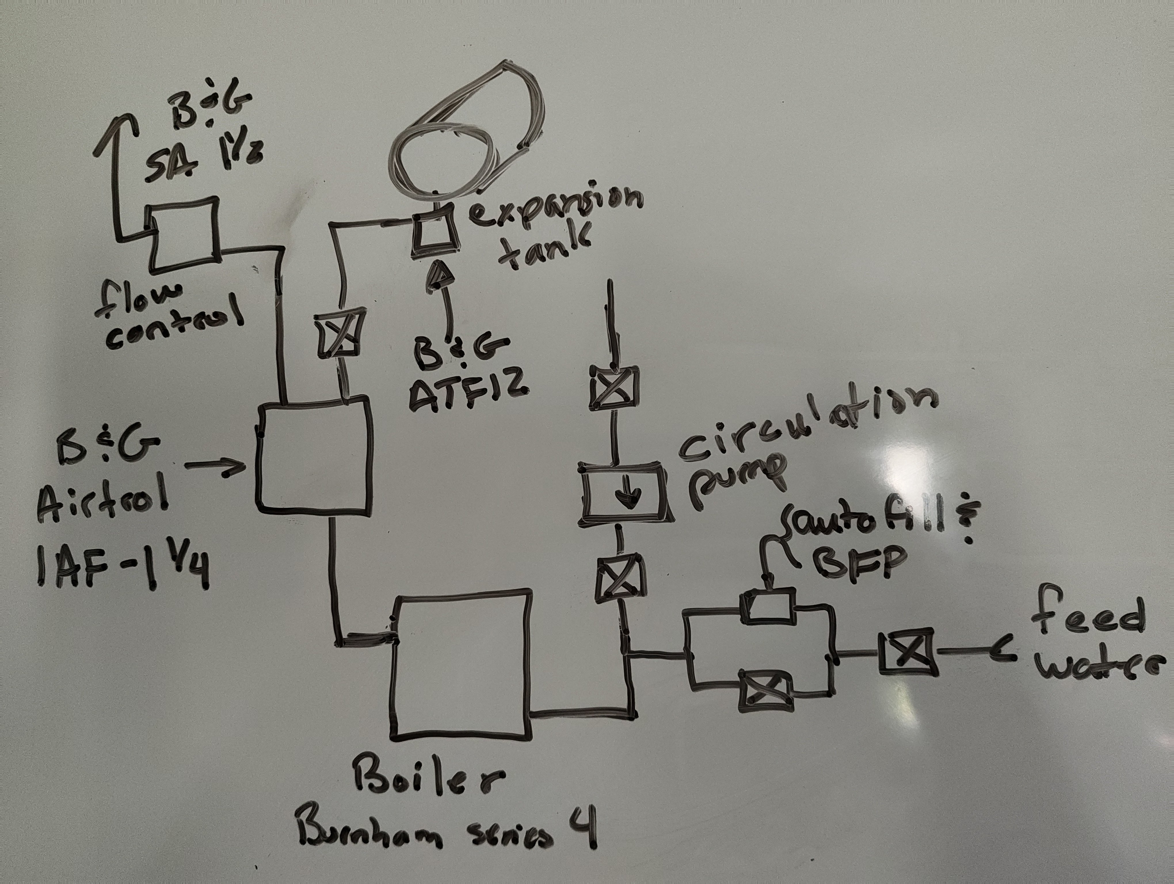 I am attaching a drawing of what I think is the current setup. I am not sure if I would need to change the B&G components: SA 1&1/2, 1AF-1&1/4, ATF12, but I have no idea how to test them. The system was "working" before the valve failure, in that it heated the home nicely, but not sure if it was "correct".