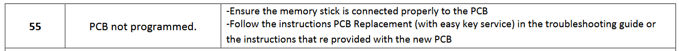 When auto calibration is started, circ pump comes on, and then nothing. When I reset, it throws a E55, PCB NOT PROGRAMMED. ???????????????????