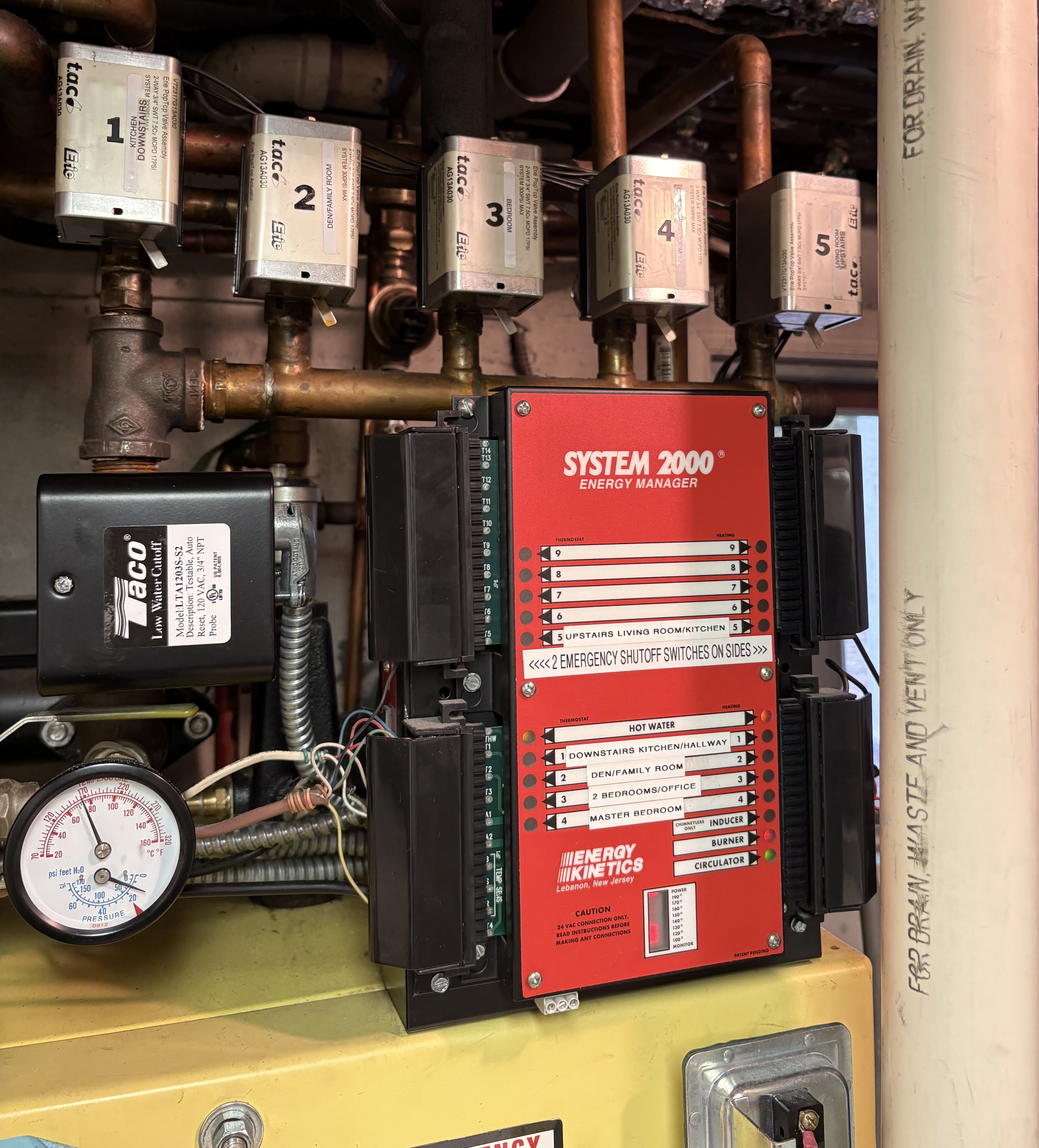 I have a system 2000 oil fired heating system. I’ve noticed a problem with the hot water supply. A few days ago the temperature outside reached 80F. I turned all of my heat thermostats to 45F (they are the old round Honeywell type). I turned on the central AC. My daughter took her usual long shower and I noticed that on one zone (5)