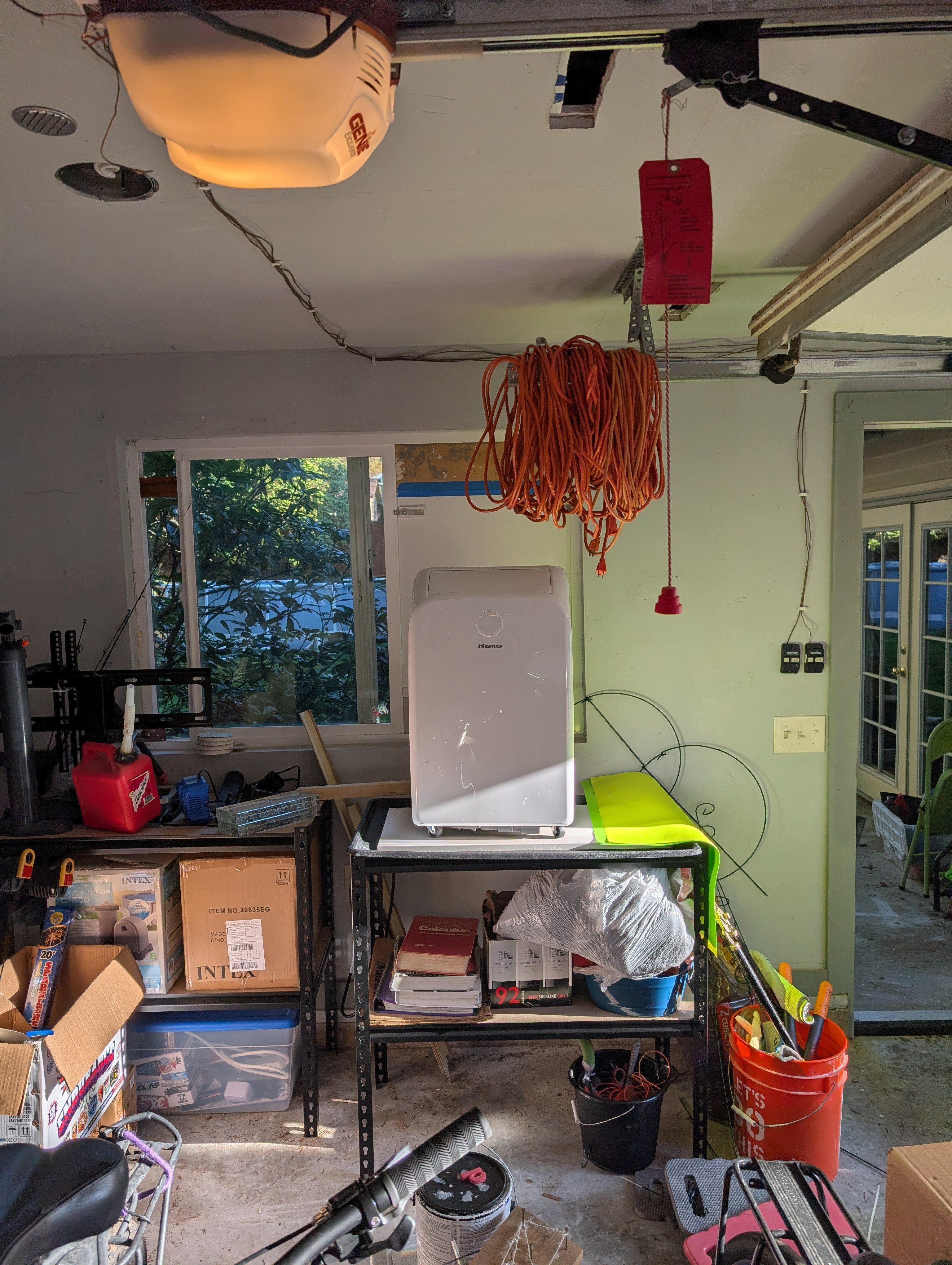 Fast forward a few months. Our furnace failed. I put one of these units on a table in the dining room/ kitchen. It was set up exactly the same as the garage except higher up so I could run the drain through the bottom of the window and not drill a hole in the wall.