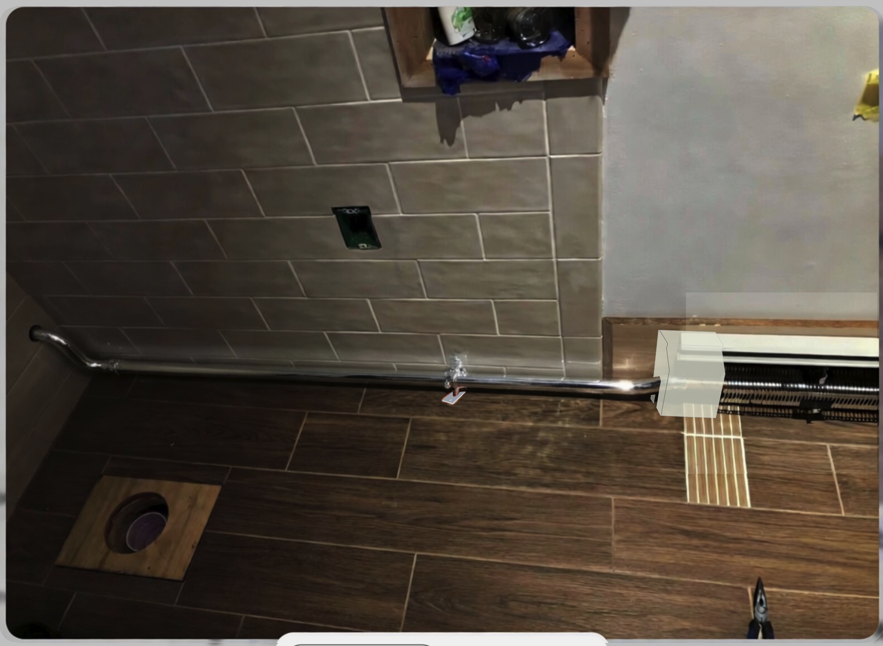 Remodeling a 100-year-old house and dry-fitting Slant/Fin baseboard. I have a 55" run in a bathroom where half the room has wood base (fin tube + enclosure installed), and the other half is fully tiled.
