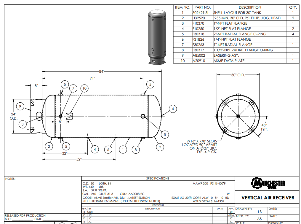Manchester Tank builds tanks for LP and compressed air. They have vertical tanks under 90"., here is a 240 G. probably an expensive tank.