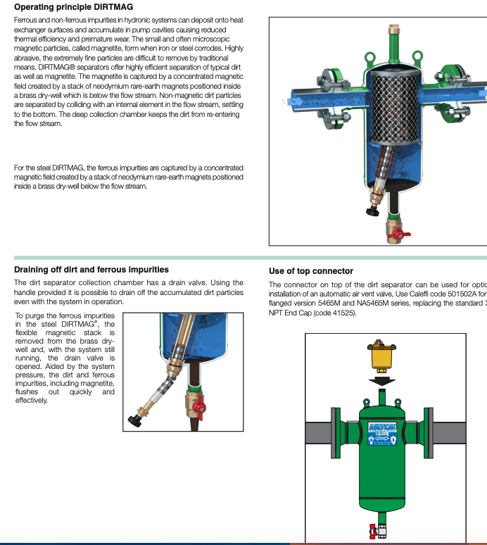 More and more systems are getting dirt separators instead of strainers. More capacity, better performance and easy to blow down.