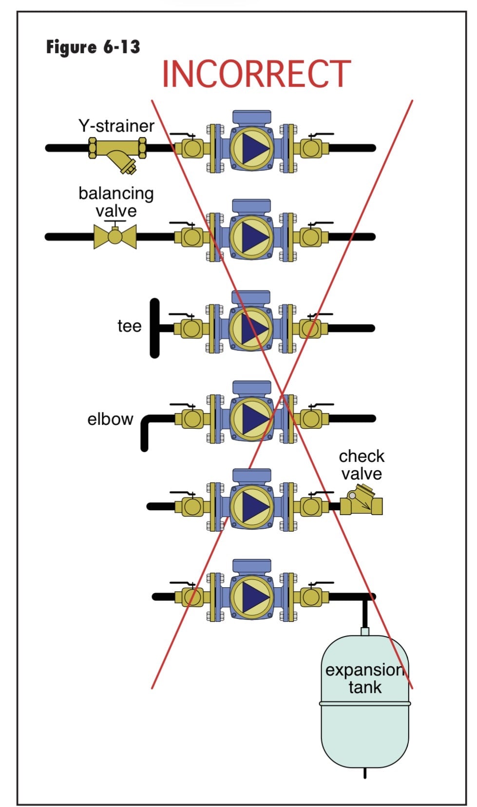 A section of straight pipe upstream and downstreamPump away from an expansion tank