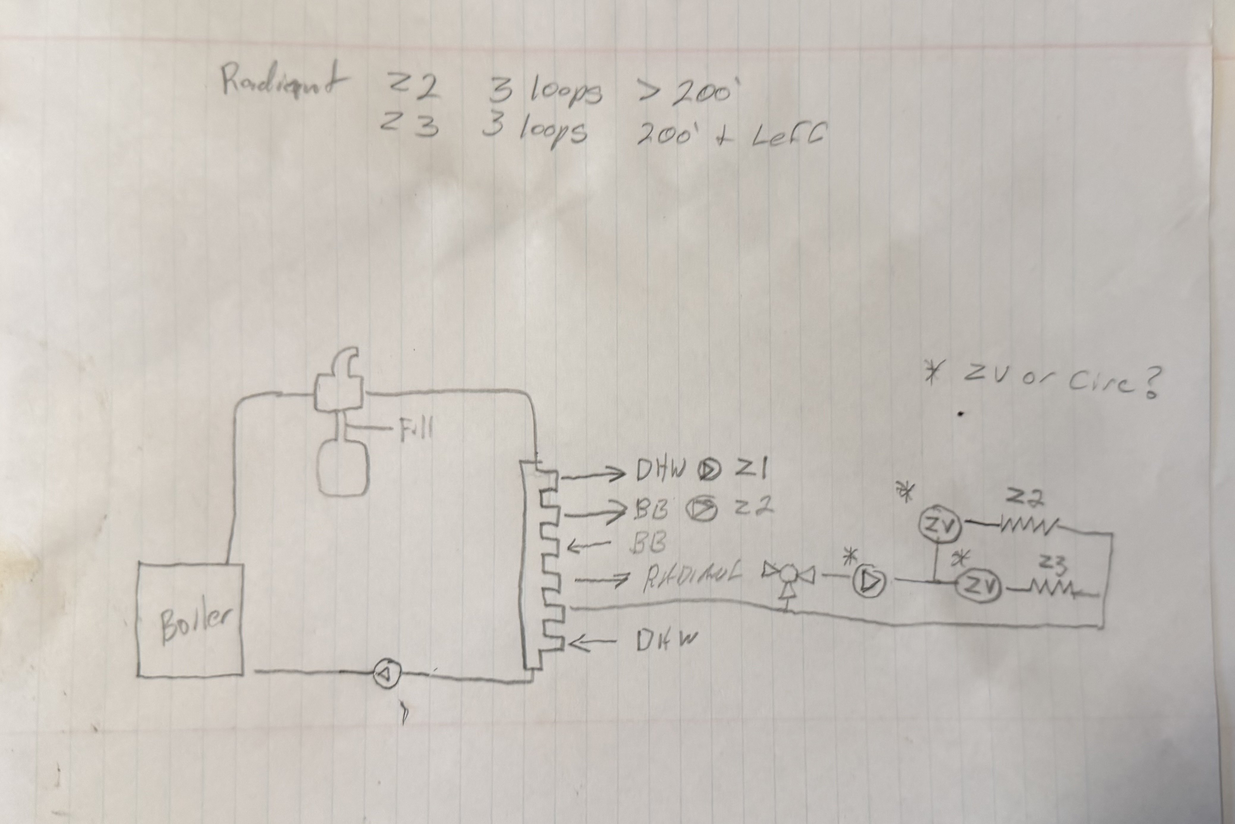 I want to add an indirect water heater as my gas fired is in the way out and got a deal on a practically brand new ID. While going through re-piping I thought why not do the radiant system I was talked out of when my original system was designed.