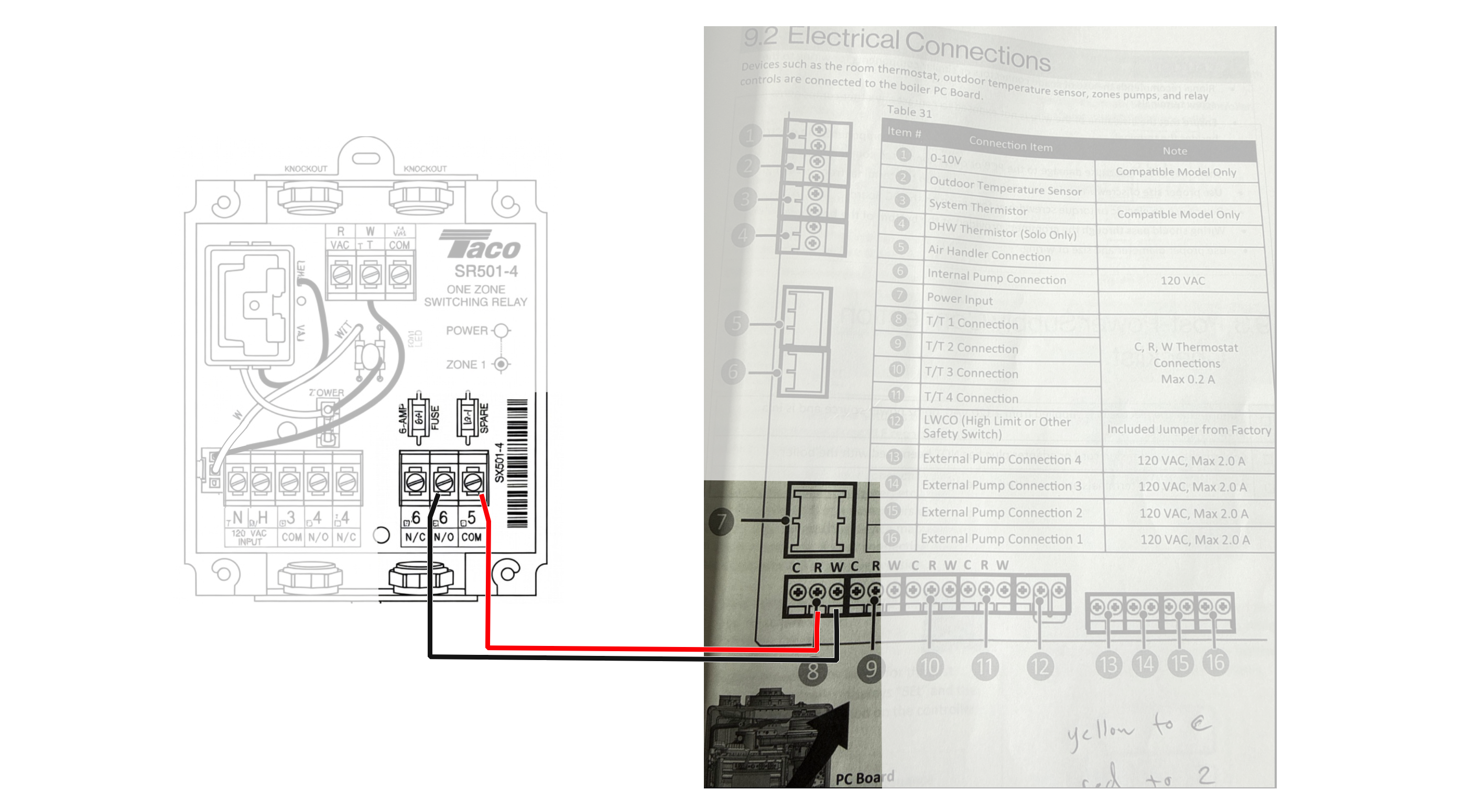 Connection from Taco SR501 to RINNAI I-Series combi boiler