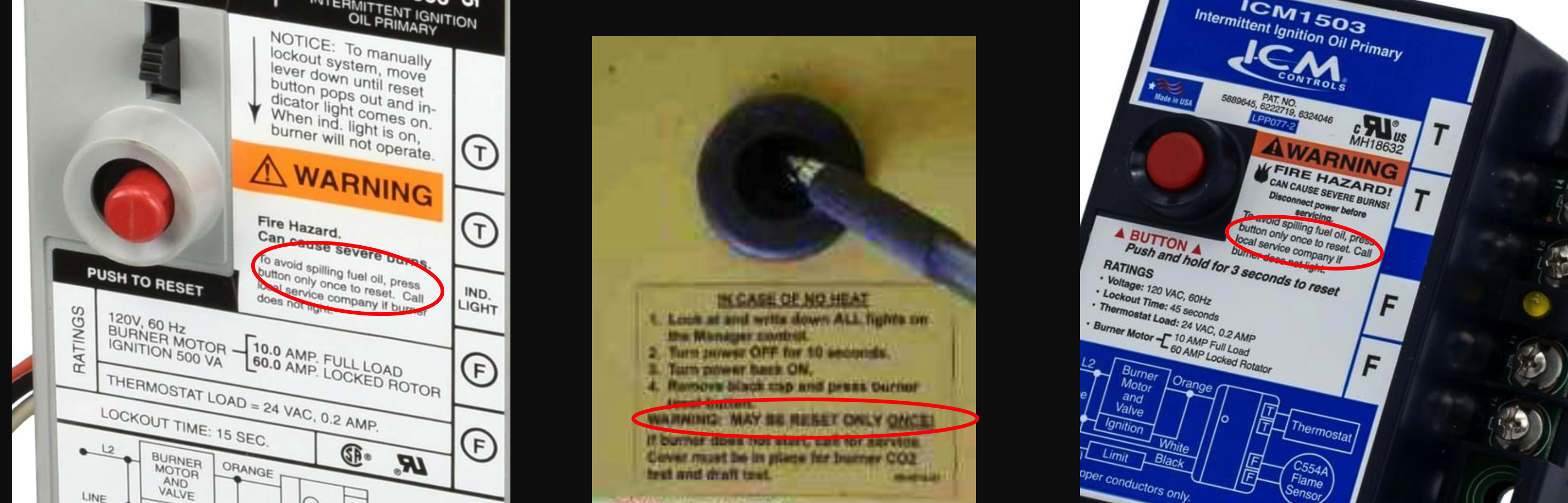 I'm not making up this "RESET ONLY ONCE" thing…. many different manufacturers of primary controls place these instructions in the literature that comes with the control and some even print it on the control itself