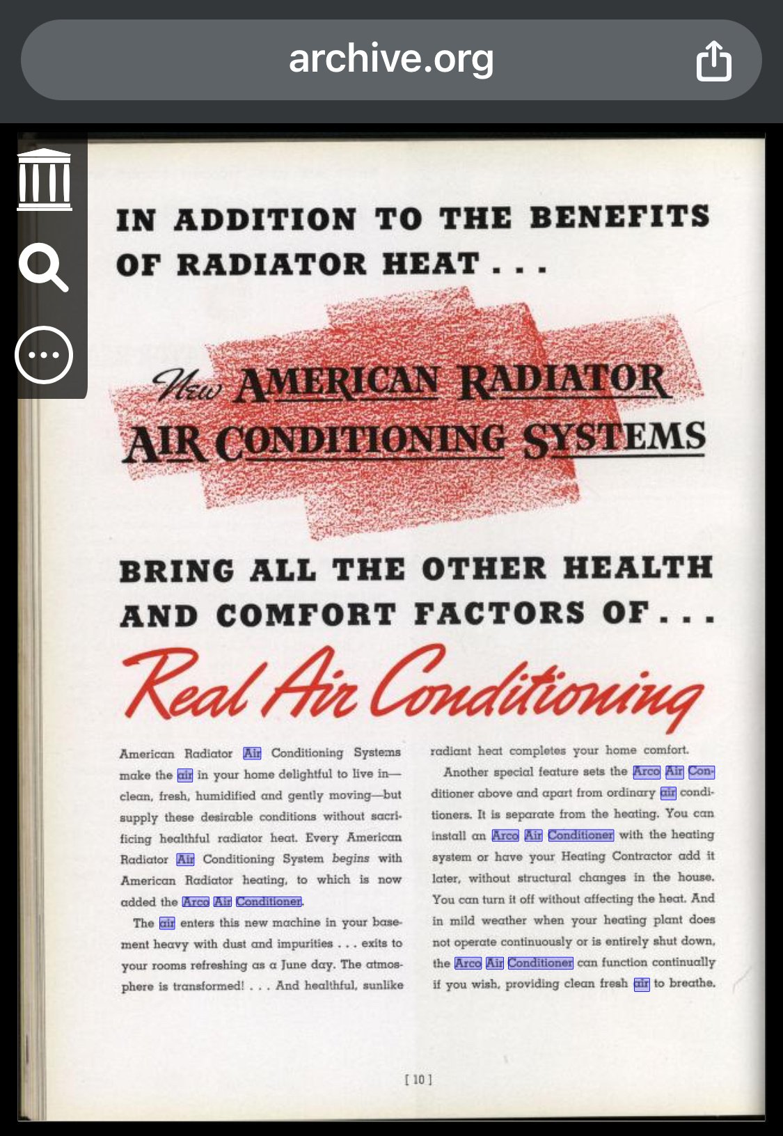 And in an old house, with an existing hot-water or steam heating system, going to mini splits for air conditioning and for milder days like we're having now (60s with 30s at night), that's the way to go. Anyway it's my plan.