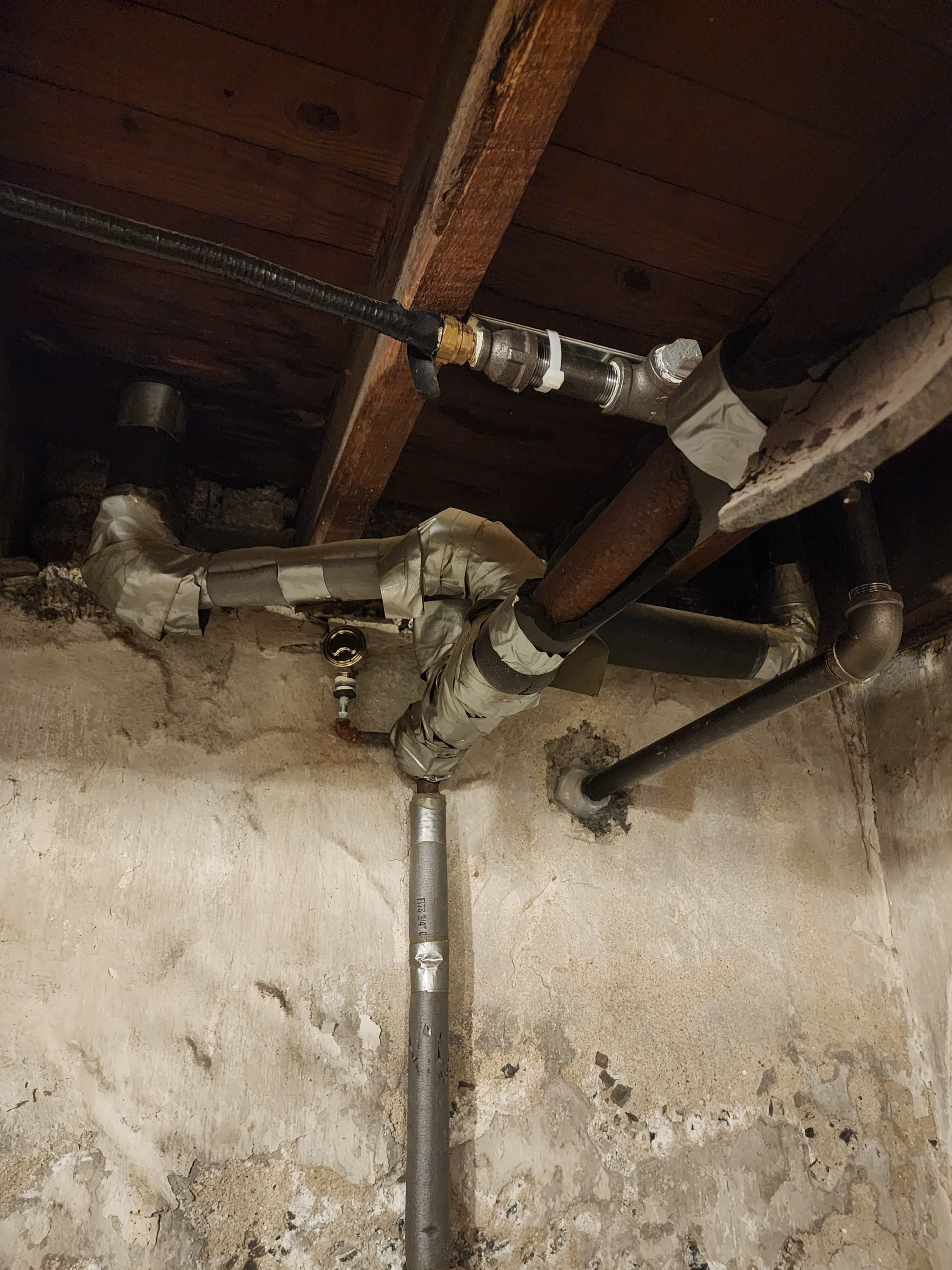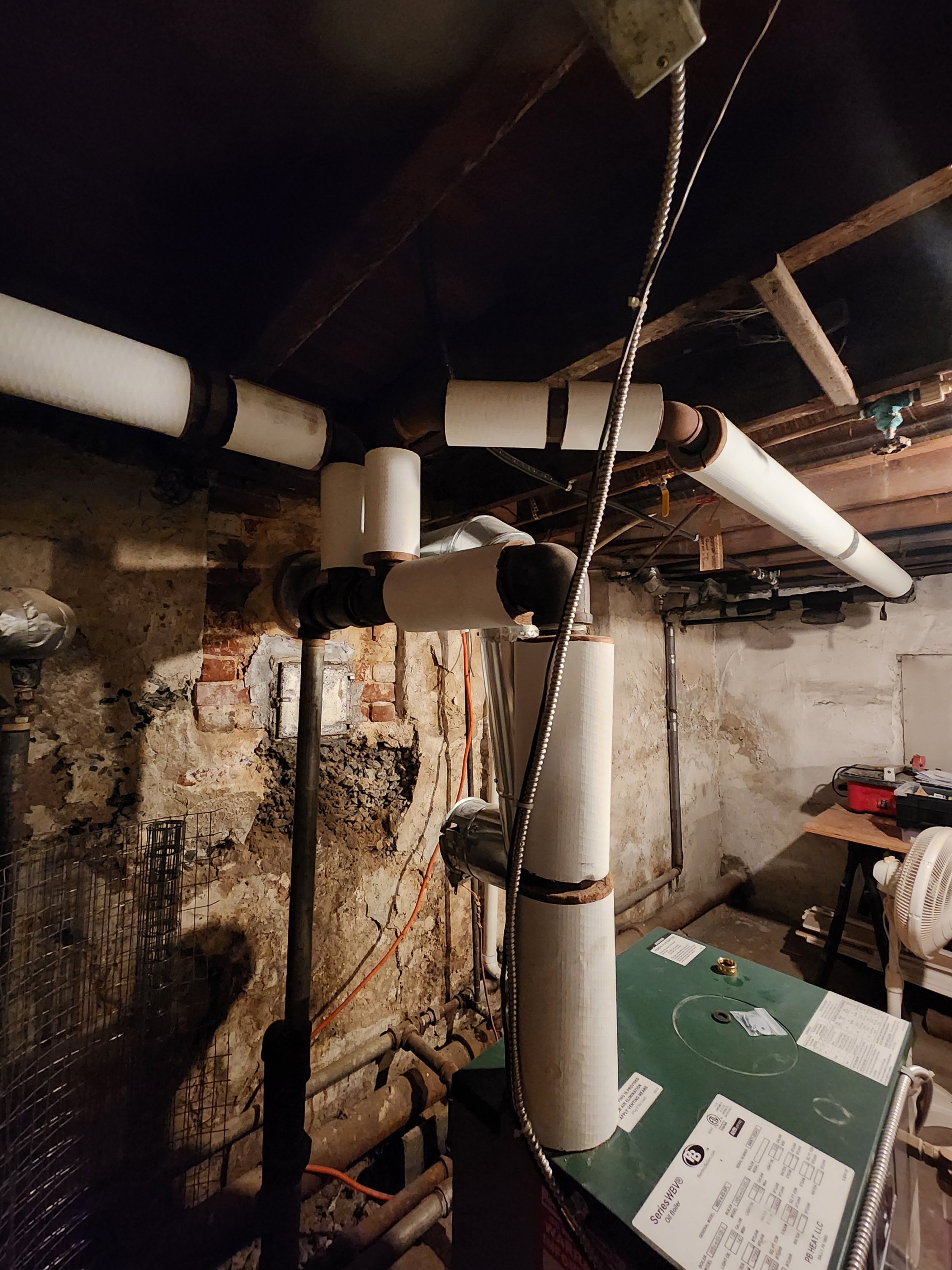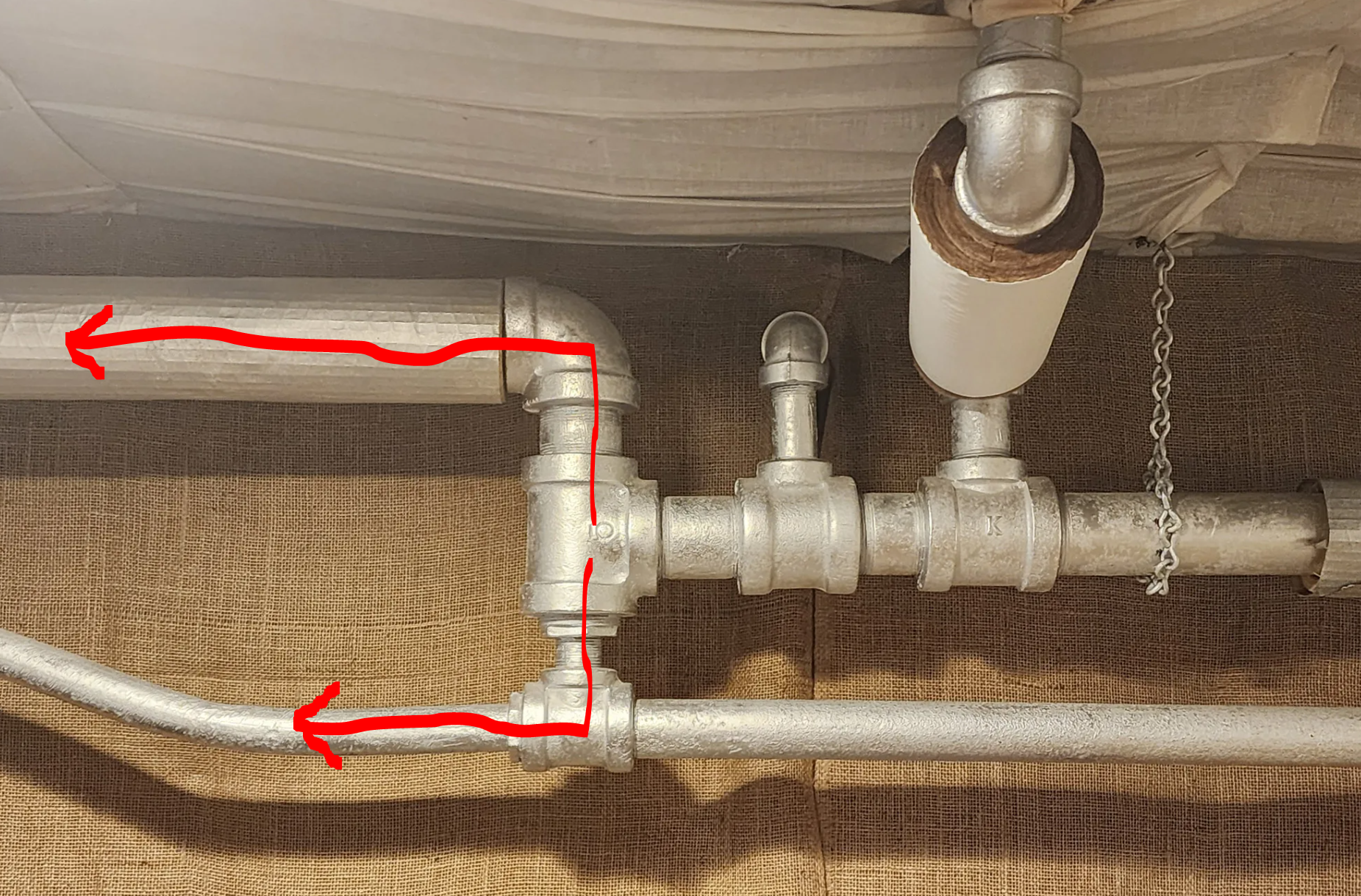 ETA: That lower pipe does drop way down once it's closer to the boiler.