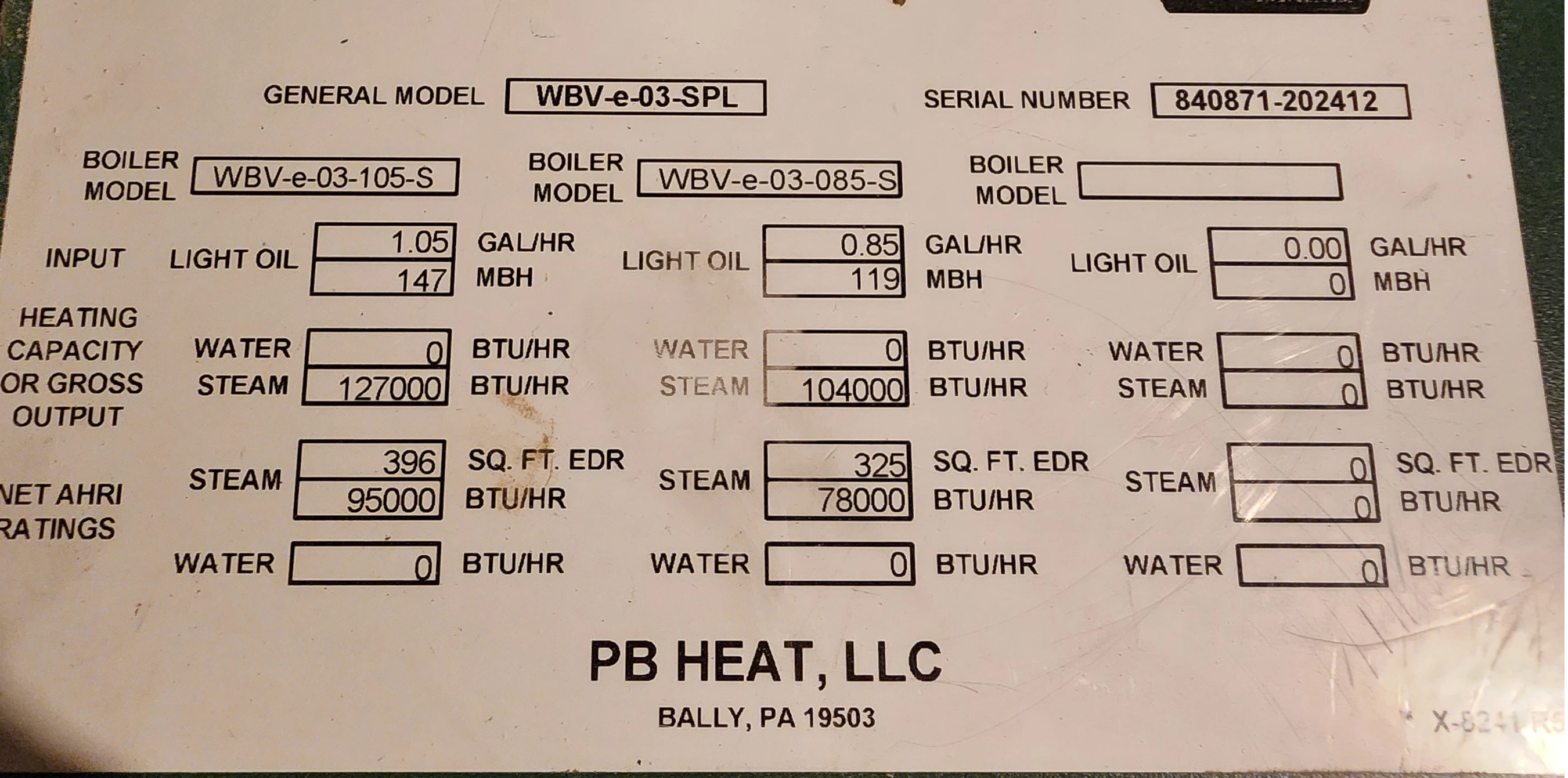 I don't know if I have the first one or the second one. Or are they the same thing, just set up differently? What's what with the BTU numbers? Am I looking at the capacity/gross output or the Net Ratings, which are both below 100,000?