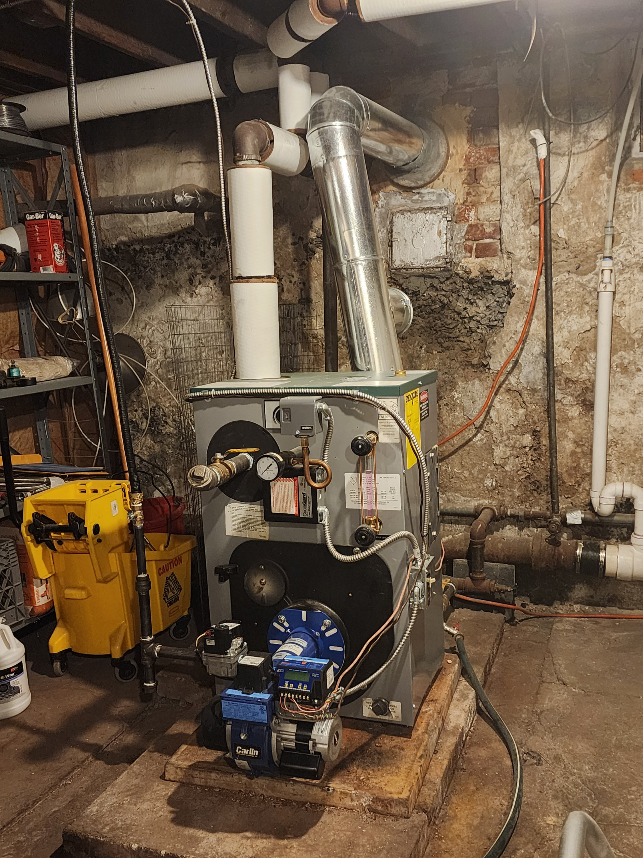 There was no natural gas line to my house yet when I had the boiler replaced. UGI came out and put the line from the street over the summer. Boiler was shot and needed to be replaced before they could get the gas line in. It was cracked, sending steam up the chimney, and I was constantly adding water. I used the new boiler with my old oil burner for the last month of the heating season. It worked better than the new gas burner.